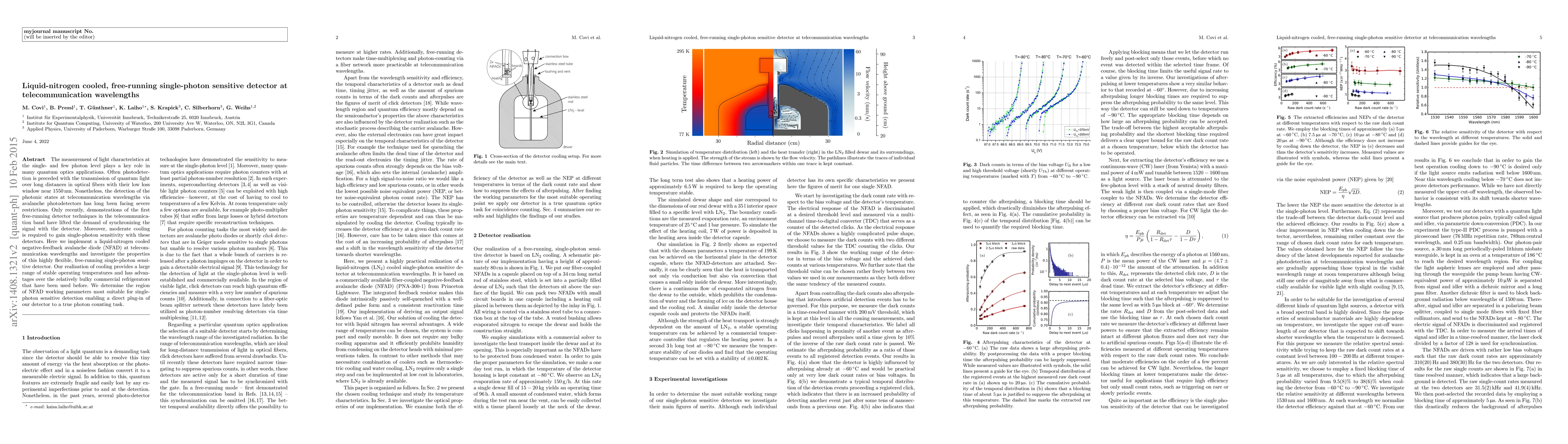 The measurement of light characteristics at the single- and few photon level plays a key role in many quantum optics applications. Often photodetection is preceded with the transmission of quantum light over long distances in optical fibers with their low loss window near 1550nm. Nonetheless, the detection of the photonic states at telecommunication wavelengths via avalanche photodetectors has long been facing severe restrictions. Only recently, demonstrations of the first free-running detector techniques in the telecommunication band have lifted the demand of synchronizing the signal with the detector. Moreover, moderate cooling is required to gain single-photon sensitivity with these detectors. Here we implement a liquid-nitrogen cooled negative-feedback avalanche diode (NFAD) at telecommunication wavelengths and investigate the properties of this highly flexible, free-running single-photon sensitive detector. Our realization of cooling provides a large range of stable operating temperatures and has advantages over the relatively bulky commercial refrigerators that have been used before. We determine the region of NFAD working parameters most suitable for single-photon sensitive detection enabling a direct plug-in of our detector to a true photon counting task.