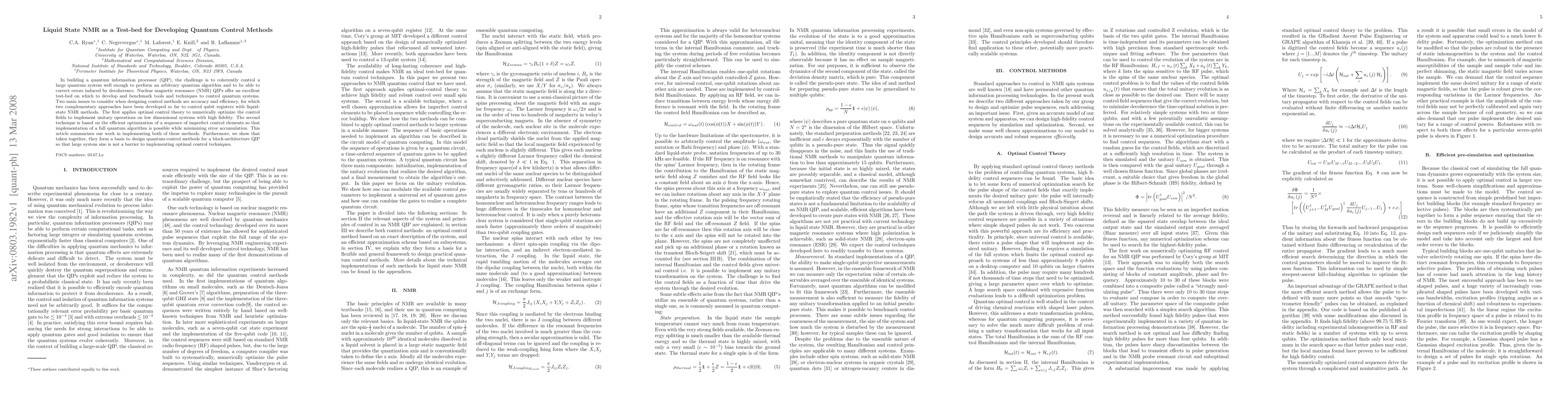 In building a quantum information processor (QIP), the challenge is to coherently control a large quantum system well enough to perform an arbitrary quantum algorithm and to be able to correct errors induced by decoherence. Nuclear magnetic resonance (NMR) QIPs offer an excellent test-bed on which to develop and benchmark tools and techniques to control quantum systems. Two main issues to consider when designing control methods are accuracy and efficiency, for which two complementary approaches have been developed so far to control qubit registers with liquid-state NMR methods. The first applies optimal control theory to numerically optimize the control fields to implement unitary operations on low dimensional systems with high fidelity. The second technique is based on the efficient optimization of a sequence of imperfect control elements so that implementation of a full quantum algorithm is possible while minimizing error accumulation. This article summarizes our work in implementing both of these methods. Furthermore, we show that taken together, they form a basis to design quantum-control methods for a block-architecture QIP so that large system size is not a barrier to implementing optimal control techniques.