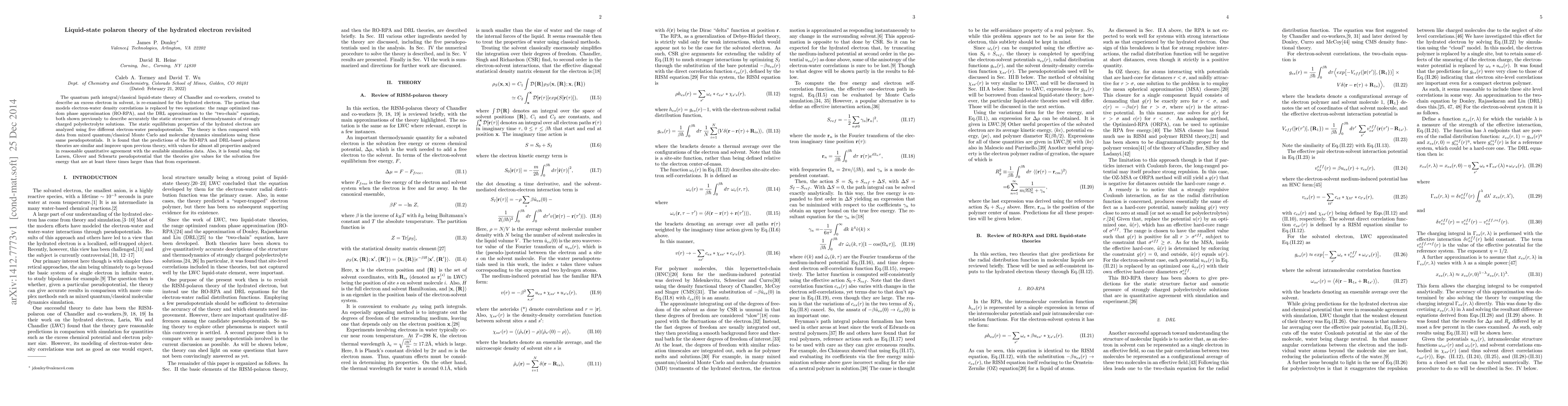 The liquid-state polaron theory of the hydrated electron has been improved upon using new equations for modeling electron-water density correlations, resulting in quantitative agreement with simulation data for many properties.