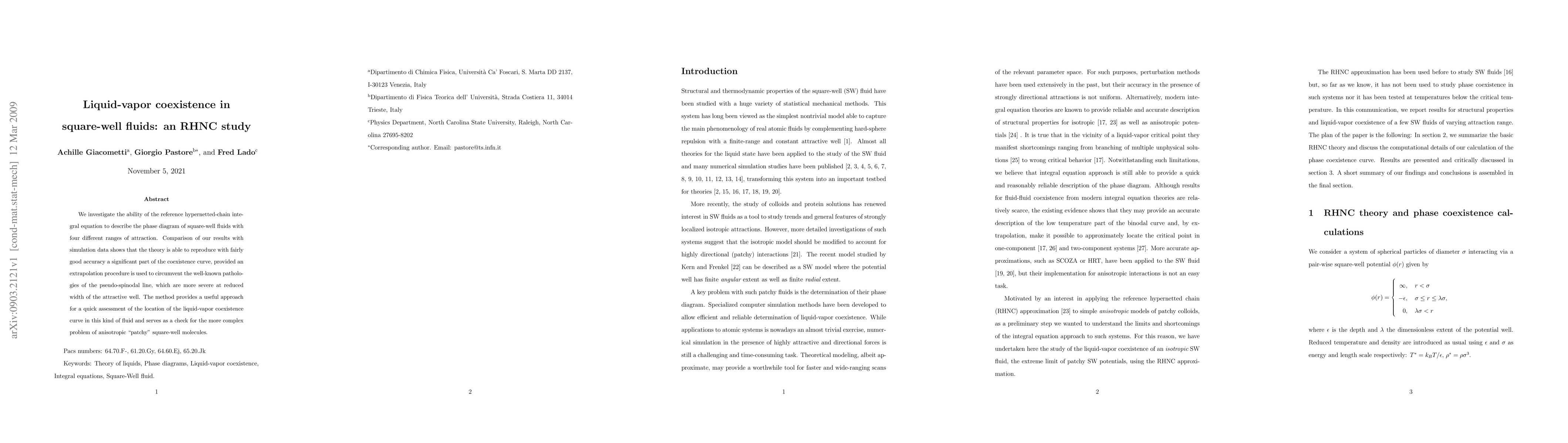 We investigate the ability of the reference hypernetted-chain integral equation to describe the phase diagram of square-well fluids with four different ranges of attraction. Comparison of our results with simulation data shows that the theory is able to reproduce with fairly good accuracy a significant part of the coexistence curve, provided an extrapolation procedure is used to circumvent the well-known pathologies of the pseudo-spinodal line, which are more severe at reduced width of the attractive well. The method provides a useful approach for a quick assessment of the location of the liquid-vapor coexistence curve in this kind of fluid and serves as a check for the more complex problem of anisotropic "patchy" square-well molecules.