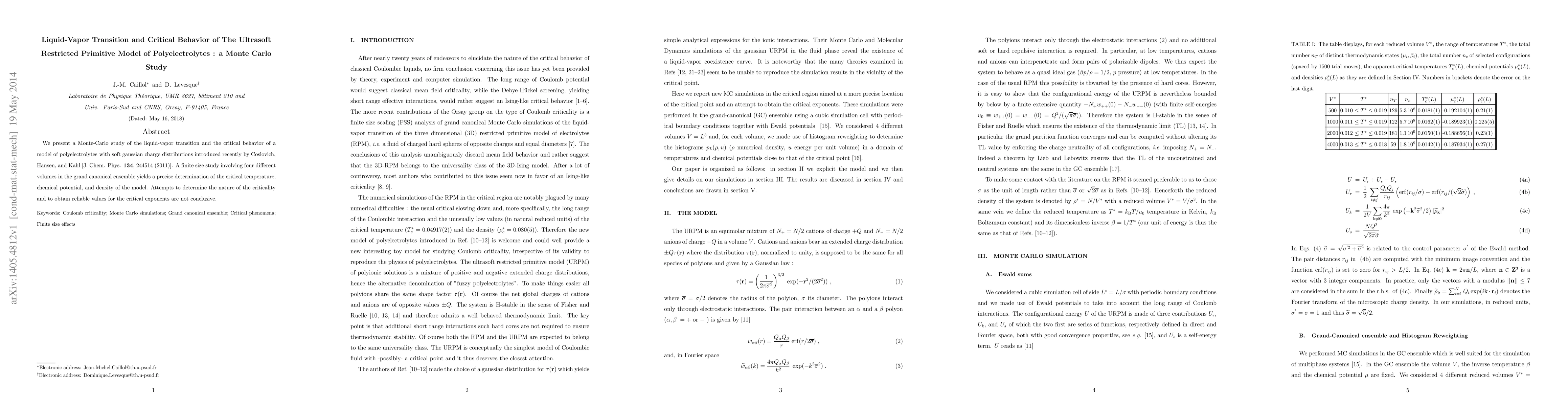 This Monte Carlo study investigates the liquid-vapor transition and critical behavior of an ultrasoft restricted primitive model of polyelectrolytes, determining the critical temperature, chemical potential, and density. Despite conclusive results on these parameters, the nature of the criticality and critical exponents remain inconclusive.
