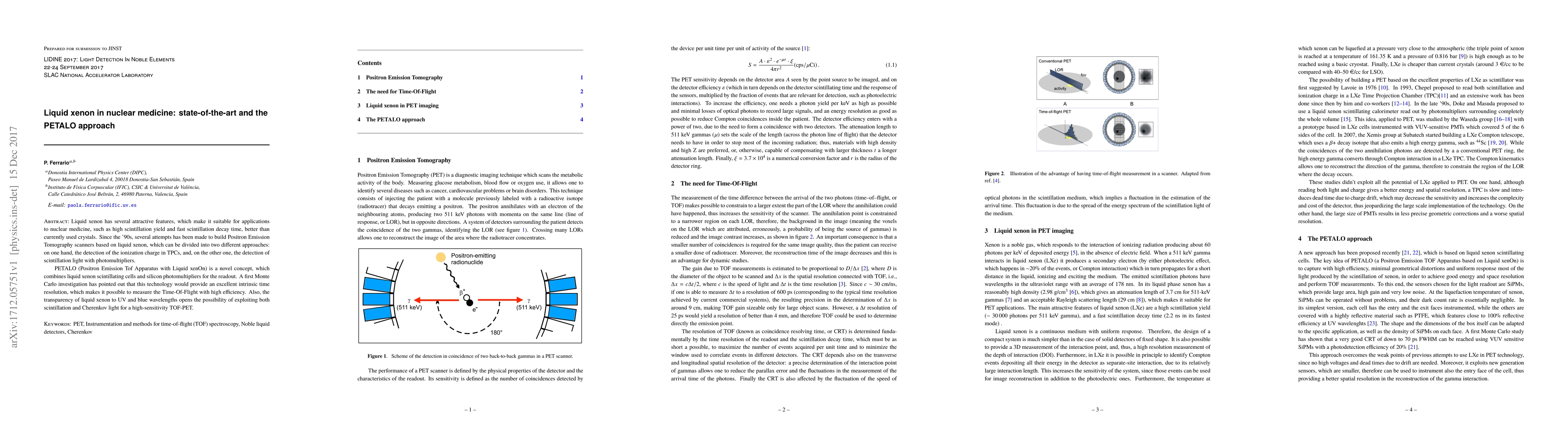 This paper discusses the potential of liquid xenon in nuclear medicine, highlighting its high scintillation yield and fast decay time. The PETALO approach combines liquid xenon with silicon photomultipliers, promising excellent time resolution and the possibility of utilizing both scintillation and Cherenkov light for high-sensitivity PET imaging.