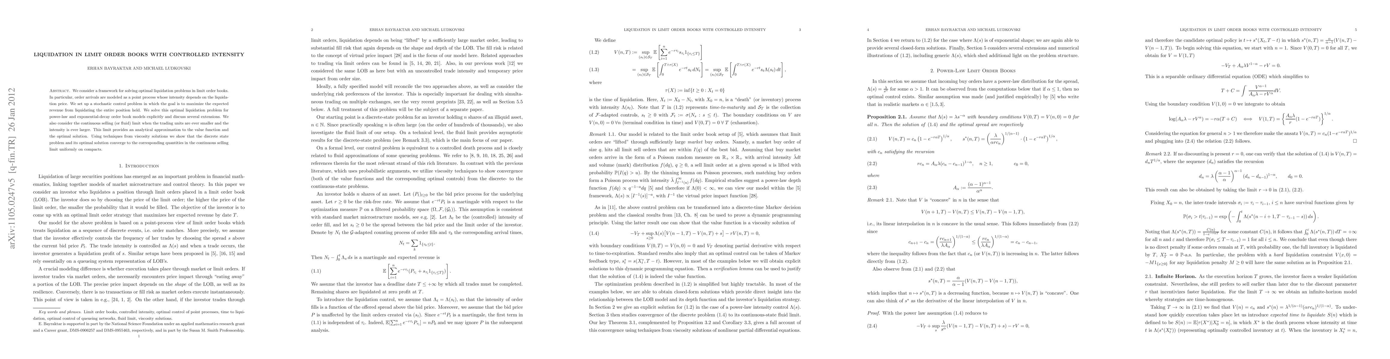 This paper develops a framework for optimal liquidation in limit order books, modeling order arrivals as a price-dependent point process. It solves the optimal liquidation problem for power-law and exponential-decay models, and discusses the continuous selling limit, showing convergence of the discrete state problem to the continuous model.