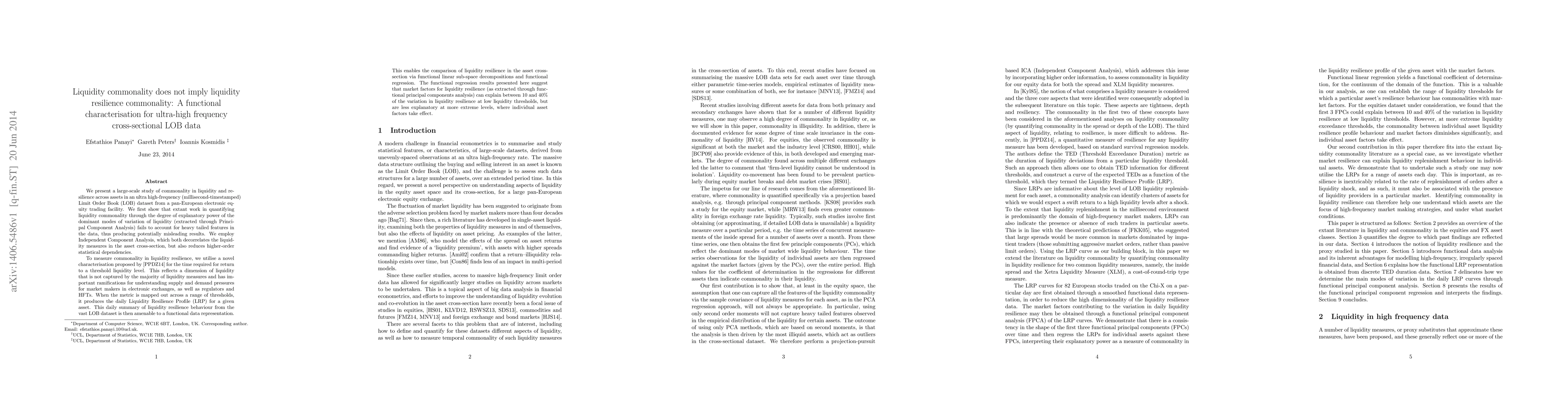 We present a large-scale study of commonality in liquidity and resilience across assets in an ultra high-frequency (millisecond-timestamped) Limit Order Book (LOB) dataset from a pan-European electronic equity trading facility. We first show that extant work in quantifying liquidity commonality through the degree of explanatory power of the dominant modes of variation of liquidity (extracted through Principal Component Analysis) fails to account for heavy tailed features in the data, thus producing potentially misleading results. We employ Independent Component Analysis, which both decorrelates the liquidity measures in the asset cross-section, but also reduces higher-order statistical dependencies. To measure commonality in liquidity resilience, we utilise a novel characterisation as the time required for return to a threshold liquidity level. This reflects a dimension of liquidity that is not captured by the majority of liquidity measures and has important ramifications for understanding supply and demand pressures for market makers in electronic exchanges, as well as regulators and HFTs. When the metric is mapped out across a range of thresholds, it produces the daily Liquidity Resilience Profile (LRP) for a given asset. This daily summary of liquidity resilience behaviour from the vast LOB dataset is then amenable to a functional data representation. This enables the comparison of liquidity resilience in the asset cross-section via functional linear sub-space decompositions and functional regression. The functional regression results presented here suggest that market factors for liquidity resilience (as extracted through functional principal components analysis) can explain between 10 and 40% of the variation in liquidity resilience at low liquidity thresholds, but are less explanatory at more extreme levels, where individual asset factors take effect.