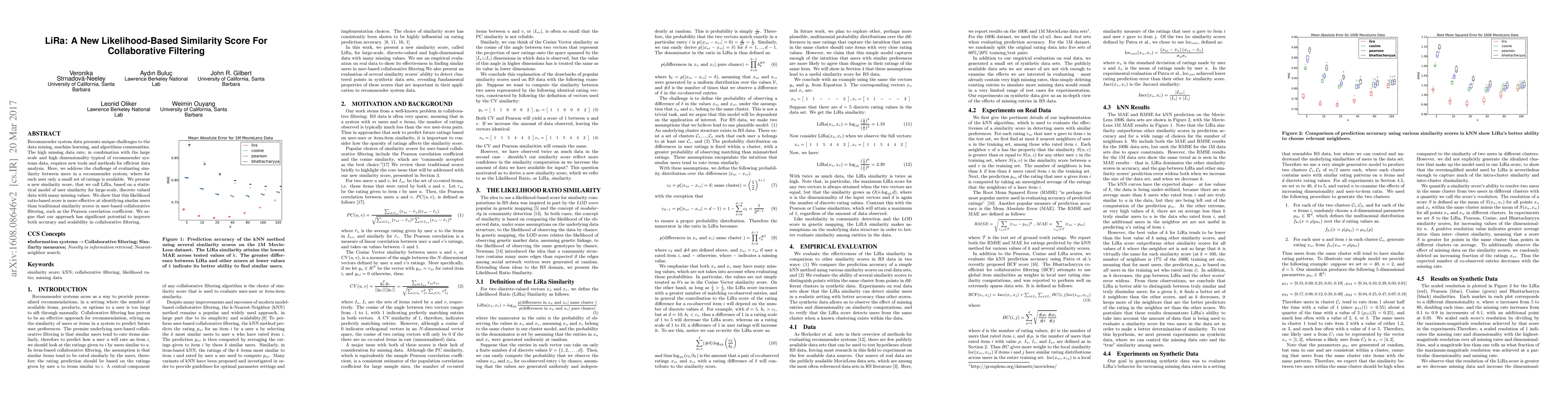The paper introduces LiRa, a new likelihood-based similarity score for collaborative filtering, designed to address the challenges of high missing data rates in recommender systems. LiRa outperforms traditional methods like the Pearson correlation coefficient by leveraging a statistical model of user similarity, potentially enhancing both accuracy and scalability in collaborative filtering.