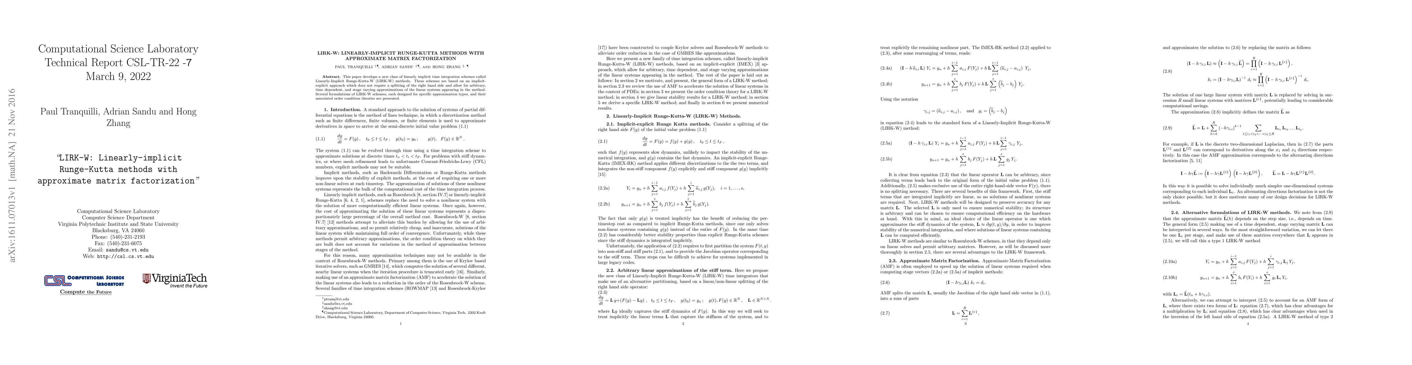 This paper introduces LIRK-W methods, a new class of linearly implicit time integration schemes that utilize an implicit-explicit approach without requiring right-hand side splitting, allowing for flexible approximations of linear systems. The paper also presents various formulations and their order conditions.