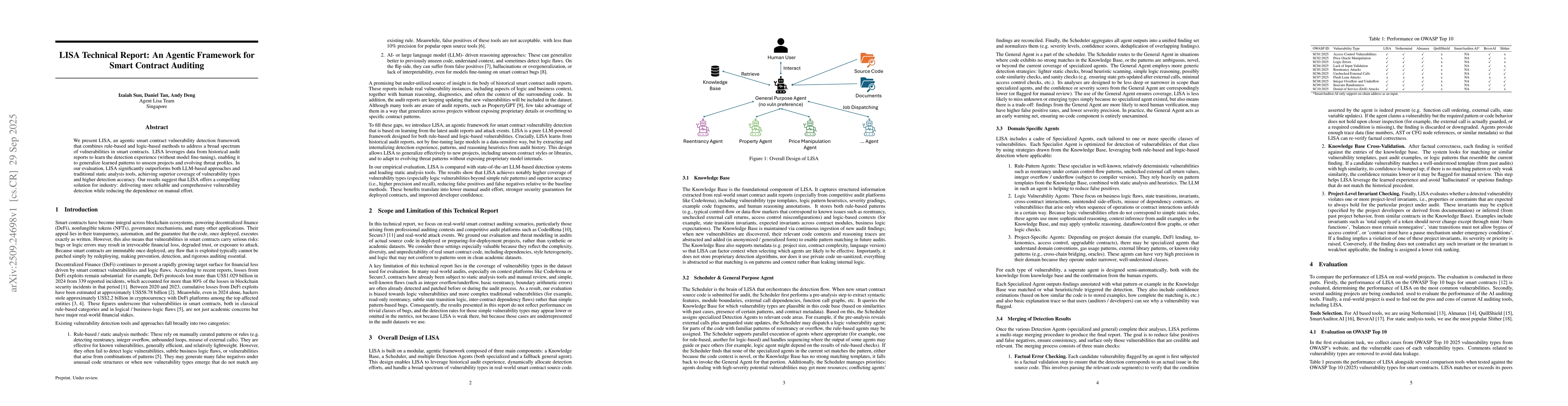 LISA introduces an agentic framework that integrates rule-based and logic-based detection methods with a dynamic agent scheduling system and multi-stage result merging, enhancing both coverage and accuracy in smart contract vulnerability detection.