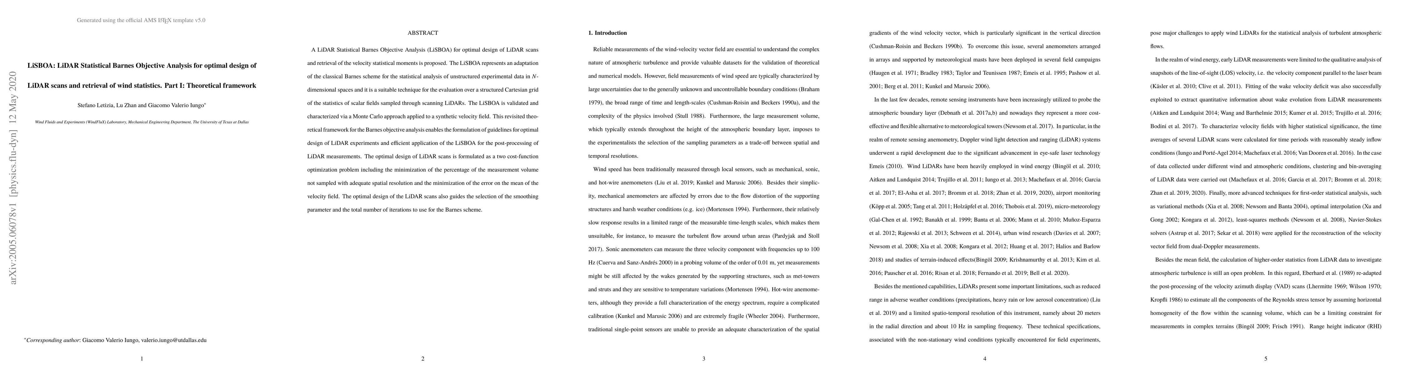 LiSBOA is a novel adaptation of the Barnes scheme for LiDAR scans, optimizing their design and retrieving wind statistics. It aims to minimize unsampled volume and error in velocity field mean, guiding the selection of parameters for effective post-processing.