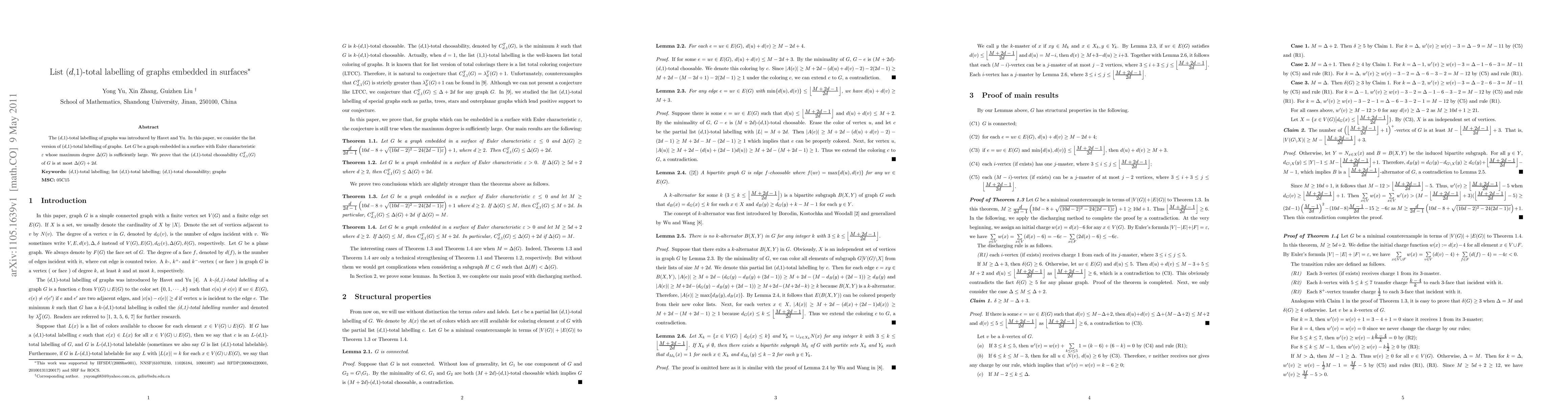 The (d,1)-total labelling of graphs was introduced by Havet and Yu. In this paper, we consider the list version of (d,1)-total labelling of graphs. Let G be a graph embedded in a surface with Euler characteristic $\epsilon$ whose maximum degree $\Delta(G)$ is sufficiently large. We prove that the (d,1)-total choosability $C_{d,1}^T(G)$ of $G$ is at most $\Delta(G)+2d$.