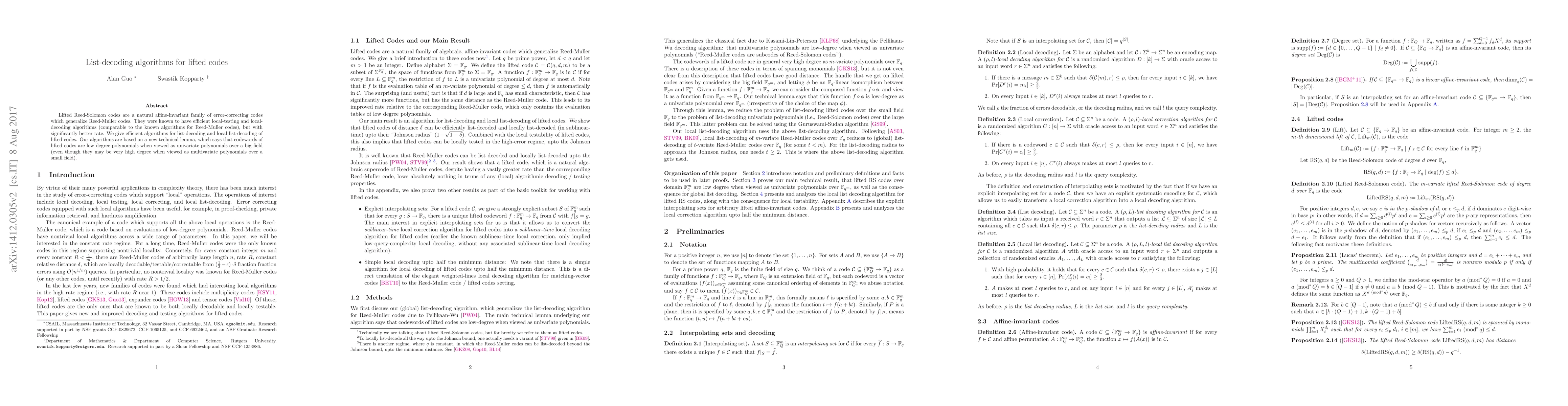 This paper presents efficient list-decoding algorithms for lifted Reed-Solomon codes, which generalize Reed-Muller codes with better rates. The authors leverage a new technical lemma showing that codewords are low-degree polynomials over a large field, enabling the development of these algorithms.