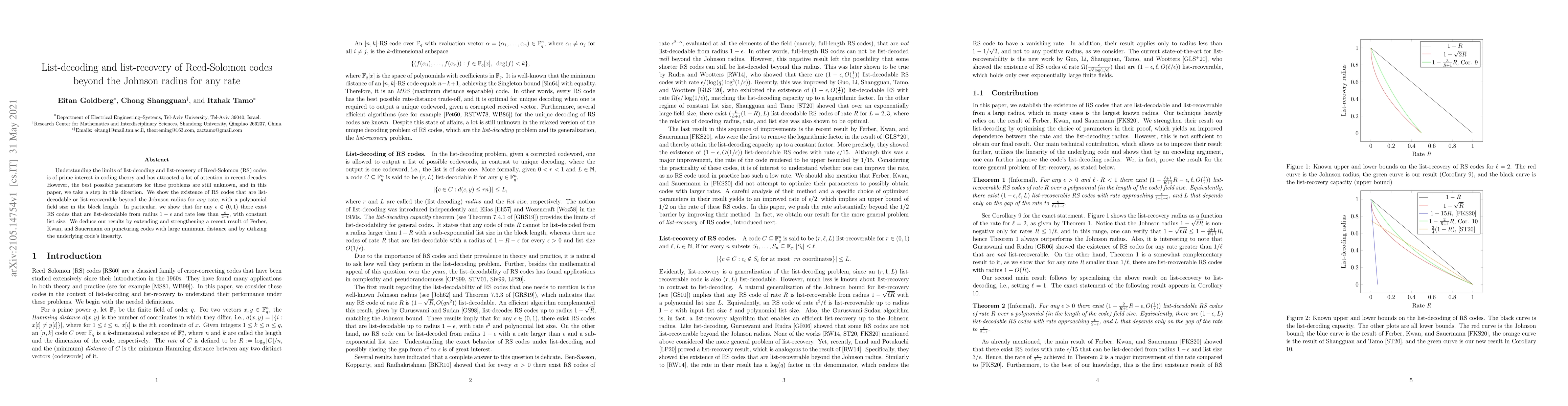 This paper demonstrates the existence of Reed-Solomon codes that can be list-decoded or list-recovered beyond the Johnson radius for any rate, with polynomial field size relative to the block length. The authors achieve this by extending and strengthening recent results on puncturing codes with large minimum distance.