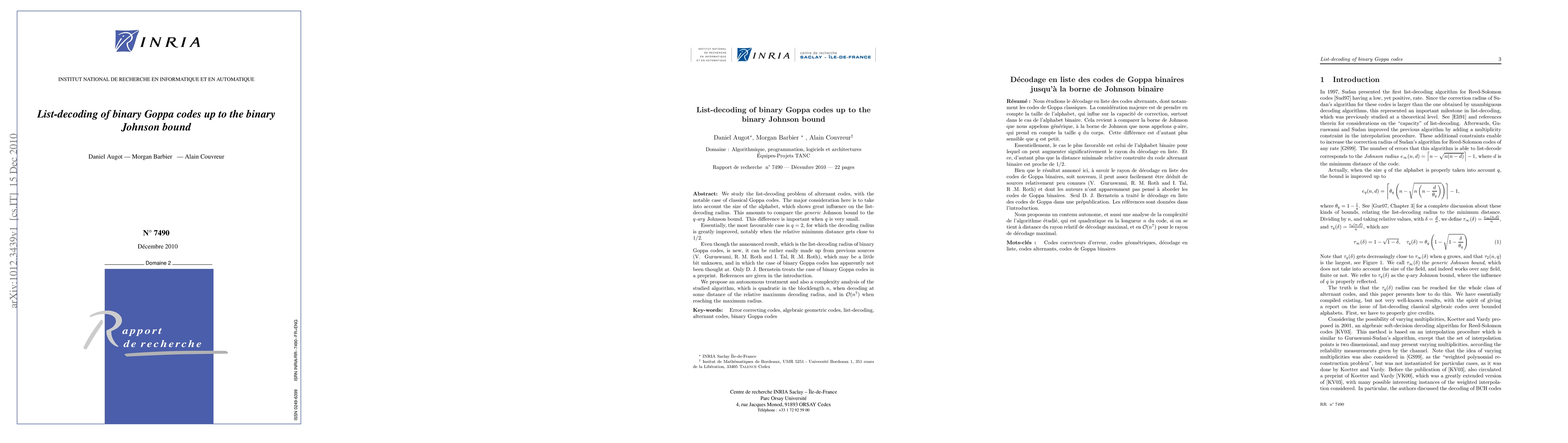 This paper explores the list-decoding problem for binary Goppa codes, focusing on the decoding radius relative to the size of the alphabet. It demonstrates significant improvements in decoding when the relative minimum distance approaches 1/2, especially when the alphabet size is small, and provides a complexity analysis of the decoding algorithm.