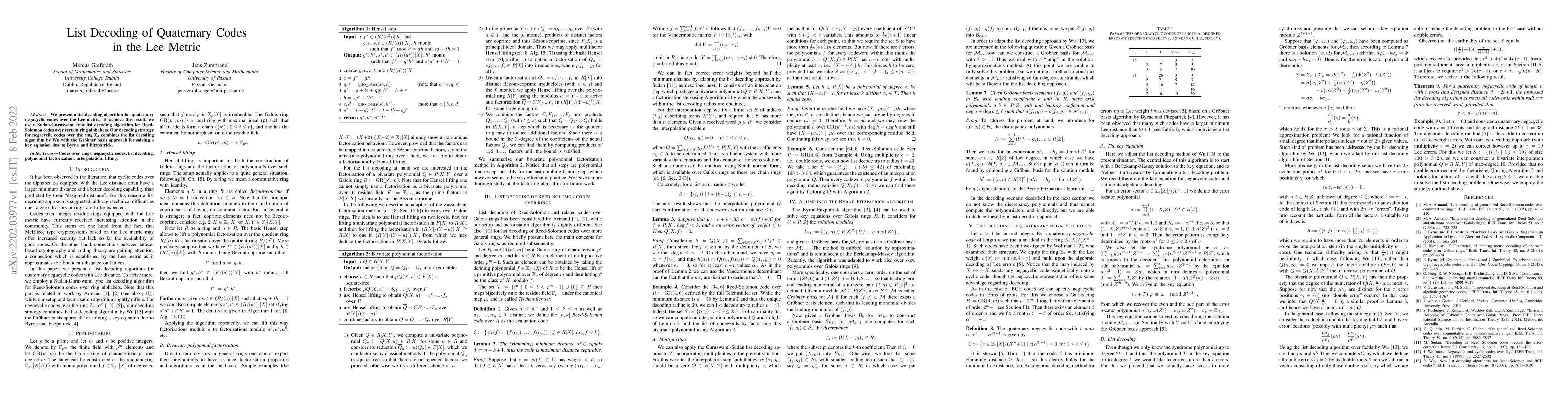 This paper introduces a list decoding algorithm for quaternary negacyclic codes in the Lee metric, leveraging a Sudan-Guruswami approach adapted from Reed-Solomon codes and combining Wu's list decoding with Gröbner basis techniques to solve a critical equation.