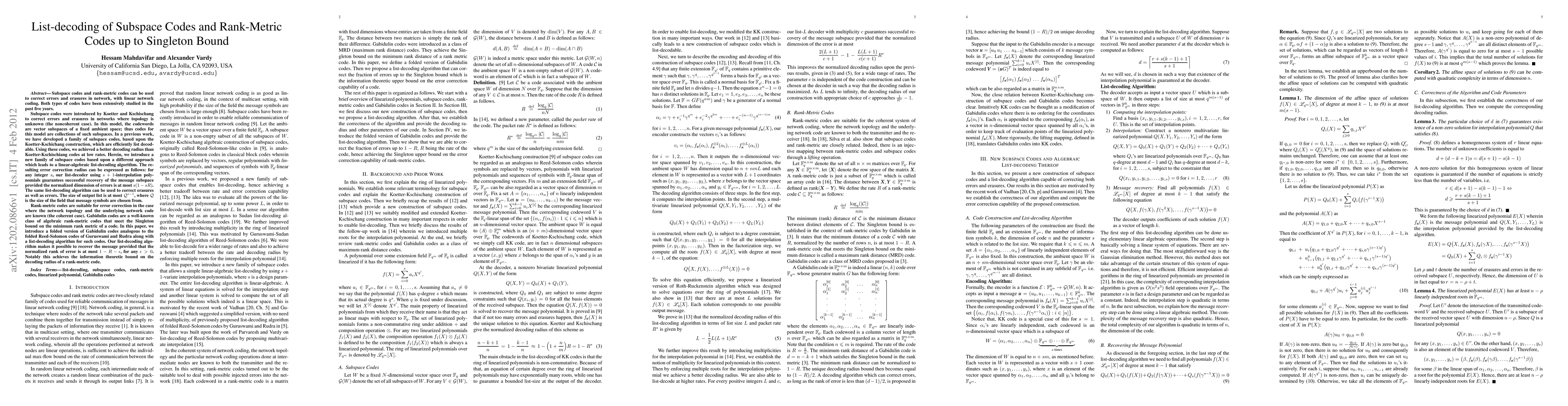 Subspace codes and rank-metric codes can be used to correct errors and erasures in network, with linear network coding. Subspace codes were introduced by Koetter and Kschischang to correct errors and erasures in networks where topology is unknown (the noncoherent case). In a previous work, we have developed a family of subspace codes, based upon the Koetter-Kschichang construction, which are efficiently list decodable. Using these codes, we achieved a better decoding radius than Koetter-Kschischiang codes at low rates. Herein, we introduce a new family of subspace codes based upon a different approach which leads to a linear-algebraic list-decoding algorithm. The resulting error correction radius can be expressed as follows: for any integer $s$, our list-decoder using $s+1$-interpolation polynomials guarantees successful recovery of the message subspace provided the normalized dimension of errors is at most $s(1-sR)$. The same list-decoding algorithm can be used to correct erasures as well as errors. The size of output list is at most $Q^{s-1}$, where $Q$ is the size of the field that message symbols are chosen from. Rank-metric codes are suitable for error correction in the case where the network topology and the underlying network code are known (the coherent case). Gabidulin codes are a well-known class of algebraic rank-metric codes that meet the Singleton bound on the minimum rank metric of a code. In this paper, we introduce a folded version of Gabidulin codes analogous to the folded Reed-Solomon codes of Guruswami and Rudra along with a list-decoding algorithm for such codes. Our list-decoding algorithm makes it possible to recover the message provided that the normalized rank of error is at most $1-R-\epsilon$, for any $\epsilon > 0$. Notably this achieves the information theoretic bound on the decoding radius of a rank-metric code.