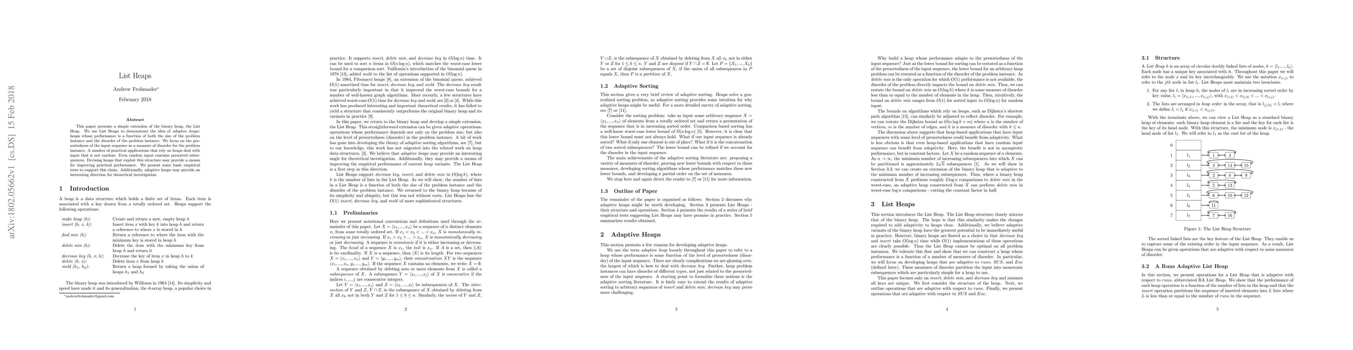 This paper introduces List Heaps, an extension of binary heaps that adapt their performance based on the presortedness of input sequences, aiming to improve practical heap-based applications. Empirical tests suggest that these adaptive heaps can enhance performance for structured, non-random input.