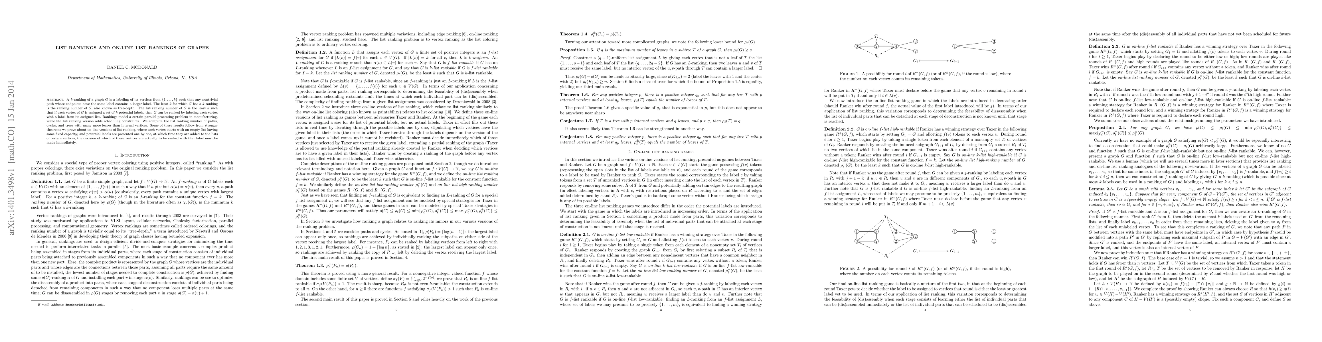 This paper investigates the list ranking number of various graph types, focusing on paths, cycles, and trees with many leaves. It also explores on-line versions of list ranking, where vertices receive labels sequentially, and presents theorems to determine the ranking number under scheduling constraints.