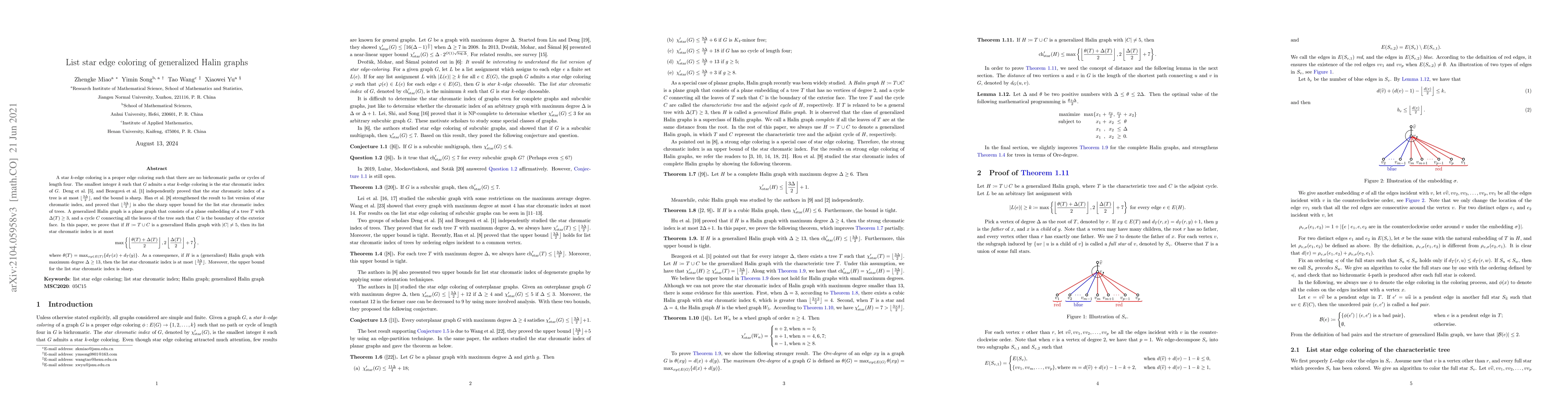 A star $k$-edge coloring is a proper edge coloring such that there are no bichromatic paths or cycles of length four. The smallest integer $k$ such that $G$ admits a star $k$-edge coloring is the star chromatic index of $G$. Deng \etal \cite{MR2933839}, and Bezegov{\'a} \etal \cite{MR3431294} independently proved that the star chromatic index of a tree is at most $\lfloor \frac{3\Delta}{2} \rfloor$, and the bound is sharp. Han \etal \cite{MR3924408} strengthened the result to list version of star chromatic index, and proved that $\lfloor \frac{3\Delta}{2} \rfloor$ is also the sharp upper bound for the list star chromatic index of trees. A generalized Halin graph is a plane graph that consists of a plane embedding of a tree $T$ with $\Delta(T) \geq 3$, and a cycle $C$ connecting all the leaves of the tree such that $C$ is the boundary of the exterior face. In this paper, we prove that if $H := T \cup C$ is a generalized Halin graph with $|C| \neq 5$, then its list star chromatic index is at most \[ \max\left\{\left\lfloor\frac{\theta(T) + \Delta(T)}{2}\right\rfloor, 2 \left\lfloor\frac{\Delta(T)}{2}\right\rfloor + 7\right\}, \] where $\theta(T) = \max_{xy \in E(T)}\{d_{T}(x) + d_{T}(y)\}$. As a consequence, if $H$ is a (generalized) Halin graph with maximum degree $\Delta \geq 13$, then the list star chromatic index is at most $\lfloor \frac{3\Delta}{2} \rfloor$. Moreover, the upper bound for the list star chromatic index is sharp.