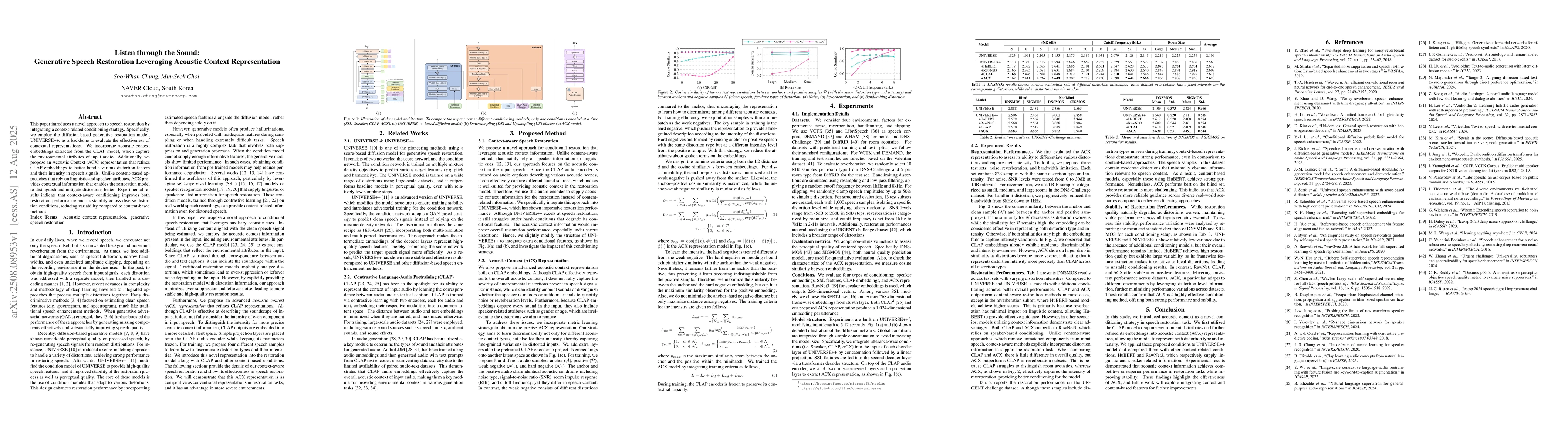 This paper introduces a novel approach to speech restoration by integrating a context-related conditioning strategy. Specifically, we employ the diffusion-based generative restoration model, UNIVERSE++, as a backbone to evaluate the effectiveness of contextual representations. We incorporate acoustic context embeddings extracted from the CLAP model, which capture the environmental attributes of input audio. Additionally, we propose an Acoustic Context (ACX) representation that refines CLAP embeddings to better handle various distortion factors and their intensity in speech signals. Unlike content-based approaches that rely on linguistic and speaker attributes, ACX provides contextual information that enables the restoration model to distinguish and mitigate distortions better. Experimental results indicate that context-aware conditioning improves both restoration performance and its stability across diverse distortion conditions, reducing variability compared to content-based methods.