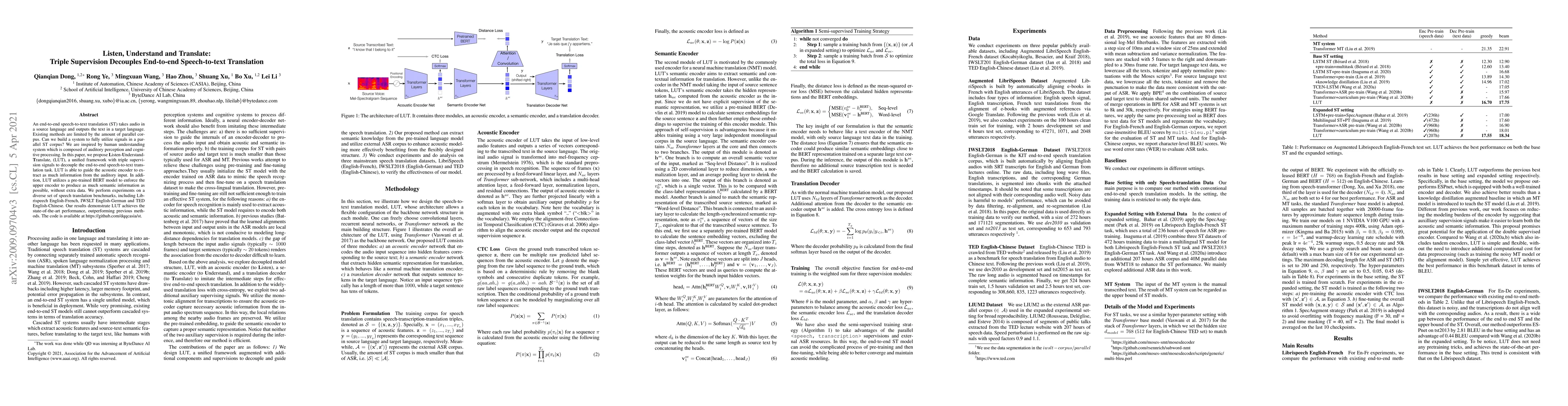 This paper proposes Listen-Understand-Translate (LUT), a framework with triple supervision to enhance end-to-end speech-to-text translation, achieving state-of-the-art performance on multiple benchmarks. LUT decouples the task by guiding the acoustic encoder and leveraging a pre-trained BERT model for semantic processing.