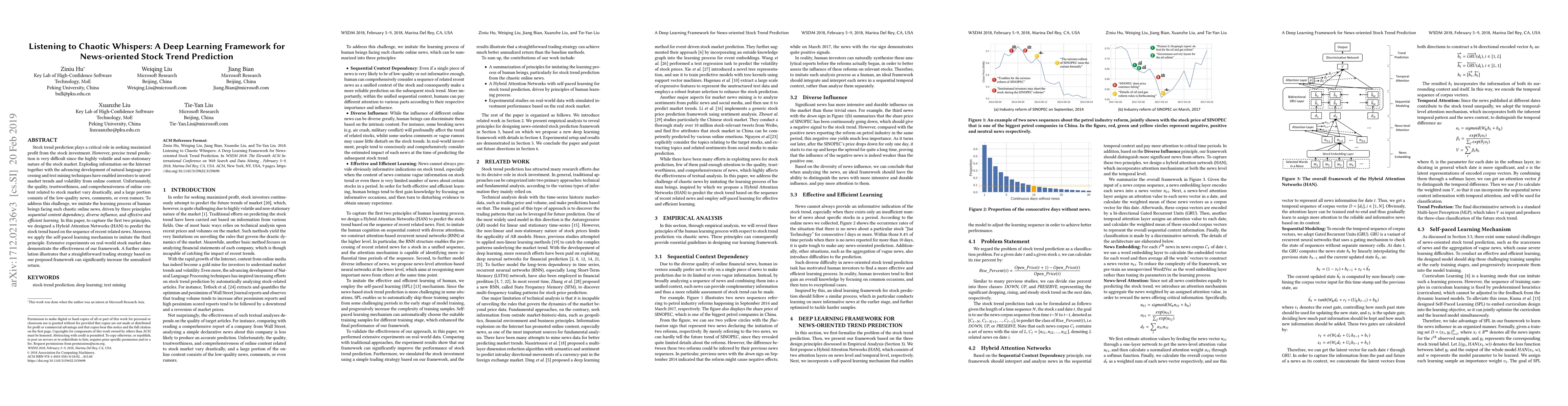 This paper proposes a deep learning framework using Hybrid Attention Networks and self-paced learning to predict stock trends from chaotic online news. The model captures sequential content dependency and diverse influence, achieving effective and efficient learning despite the variability in online content quality.