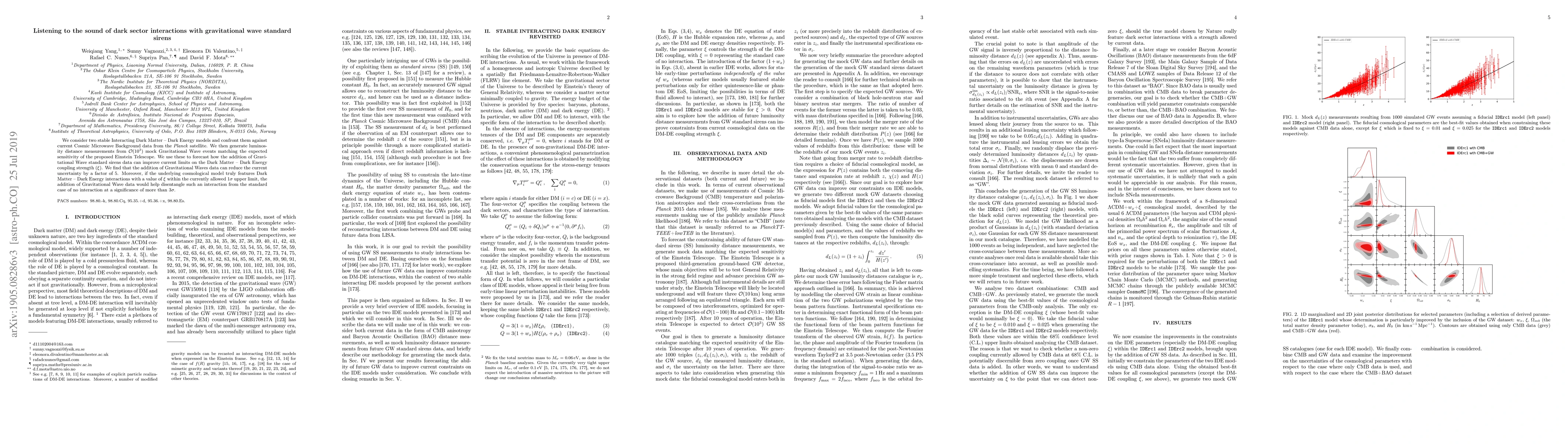 This paper explores two stable Interacting Dark Matter-Dark Energy models, comparing them against \textit{Planck} data and predicting improvements in Dark Matter-Dark Energy coupling limits using Gravitational Wave standard sirens from the Einstein Telescope. The addition of Gravitational Wave data can reduce uncertainty by a factor of 5 and significantly distinguish interaction models from non-interaction models.