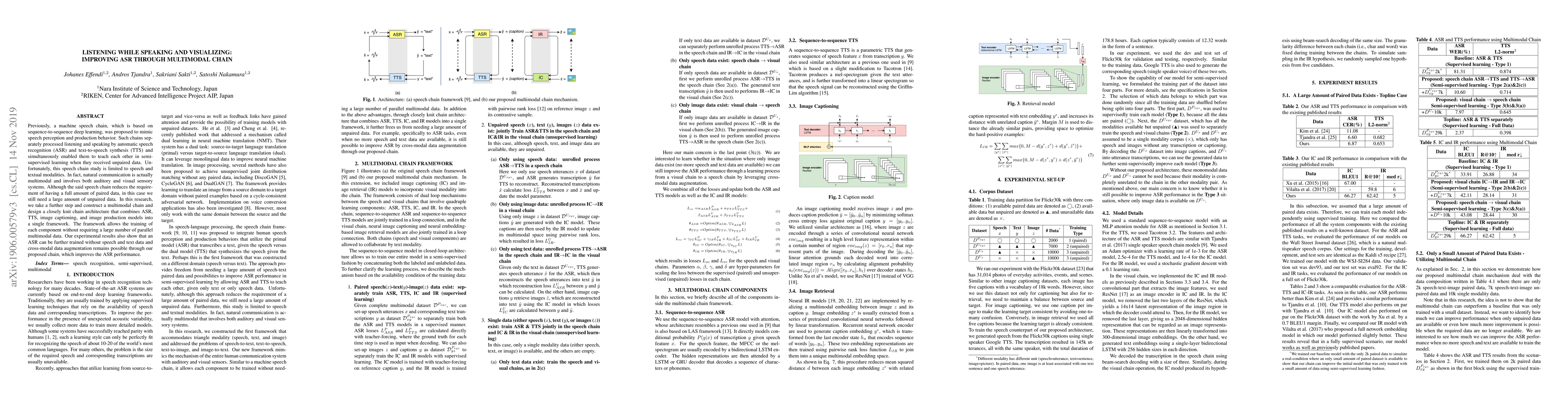 This research proposes a multimodal chain architecture integrating ASR, TTS, image captioning, and image production models to enhance automatic speech recognition (ASR) without requiring extensive paired multimodal data. The framework enables cross-modal data augmentation, improving ASR performance through semi-supervised learning.