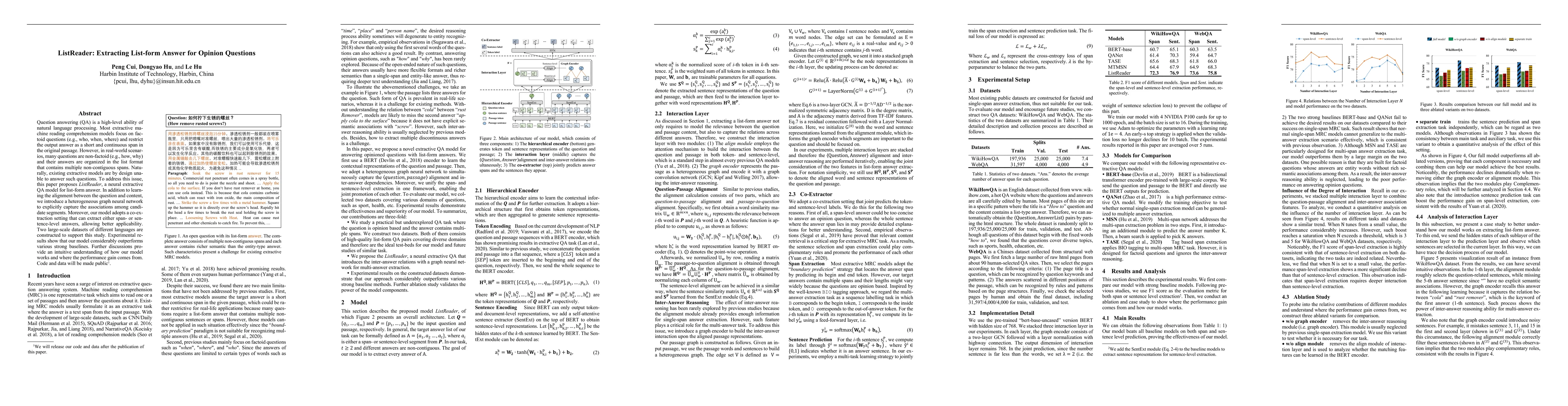 Question answering (QA) is a high-level ability of natural language processing. Most extractive ma-chine reading comprehension models focus on factoid questions (e.g., who, when, where) and restrict the output answer as a short and continuous span in the original passage. However, in real-world scenarios, many questions are non-factoid (e.g., how, why) and their answers are organized in the list format that contains multiple non-contiguous spans. Naturally, existing extractive models are by design unable to answer such questions. To address this issue, this paper proposes ListReader, a neural ex-tractive QA model for list-form answer. In addition to learning the alignment between the question and content, we introduce a heterogeneous graph neural network to explicitly capture the associations among candidate segments. Moreover, our model adopts a co-extraction setting that can extract either span- or sentence-level answers, allowing better applicability. Two large-scale datasets of different languages are constructed to support this study. Experimental results show that our model considerably outperforms various strong baselines. Further discussions provide an intuitive understanding of how our model works and where the performance gain comes from.