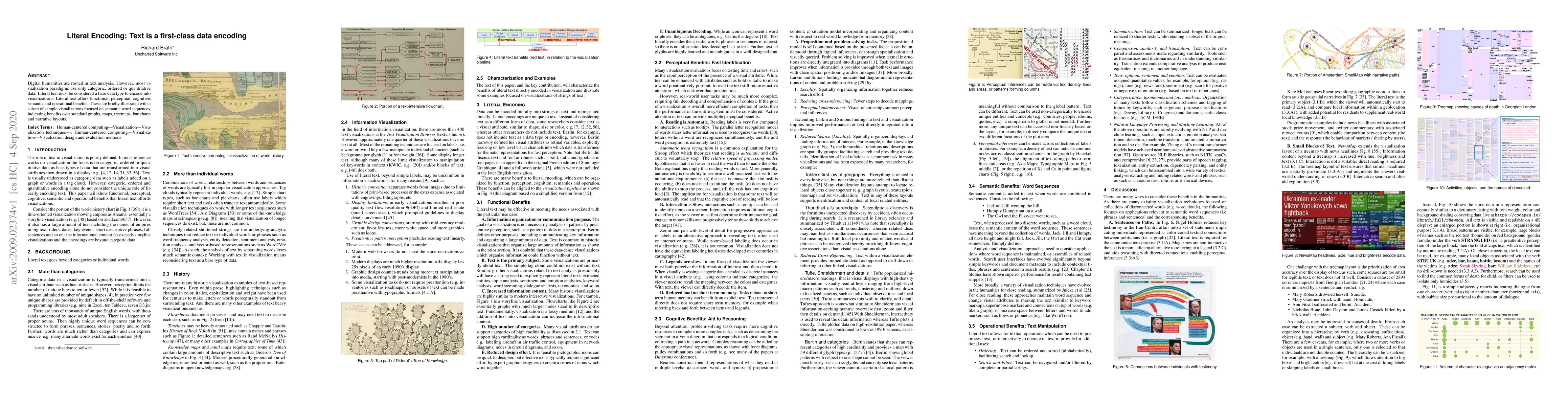Digital humanities are rooted in text analysis. However, most visualization paradigms use only categoric, ordered or quantitative data. Literal text must be considered a base data type to encode into visualizations. Literal text offers functional, perceptual, cognitive, semantic and operational benefits. These are briefly illustrated with a subset of sample visualizations focused on semantic word sequences, indicating benefits over standard graphs, maps, treemaps, bar charts and narrative layouts.