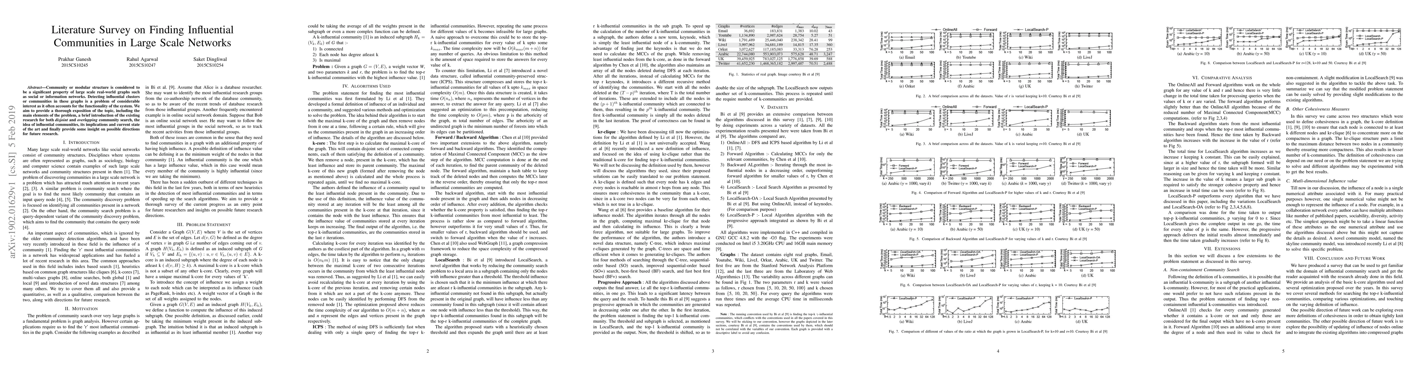 This paper surveys methods for detecting influential communities in large-scale networks, discussing both disjoint and overlapping community detection, the concept of influential communities, and current research trends, while also proposing future research directions.