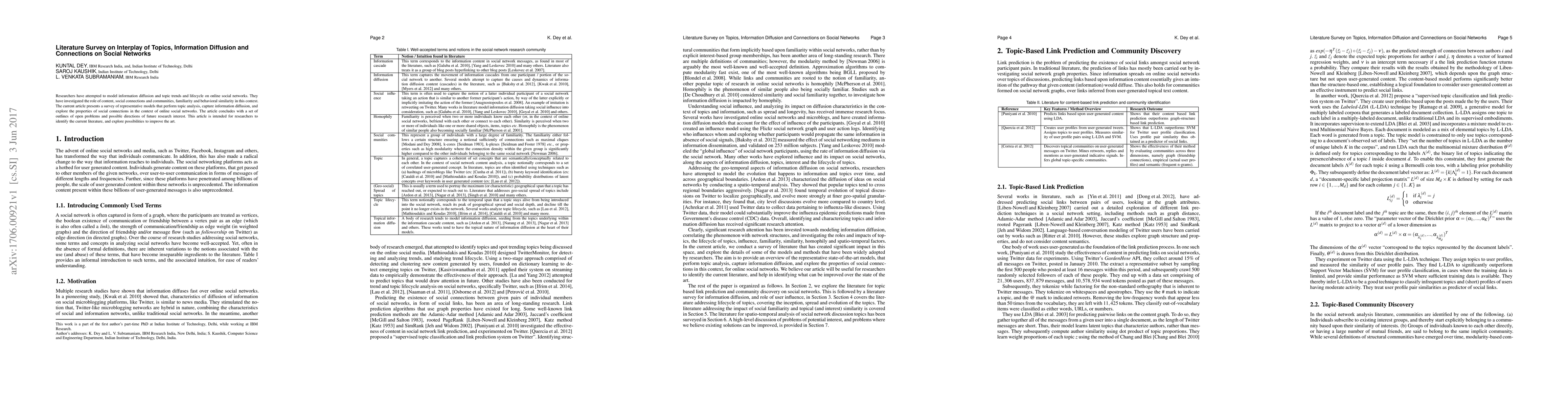 This paper surveys models analyzing information diffusion and topic trends on social networks, focusing on the roles of content, social connections, and community structures. It highlights open problems and future research directions to guide further improvements in the field.