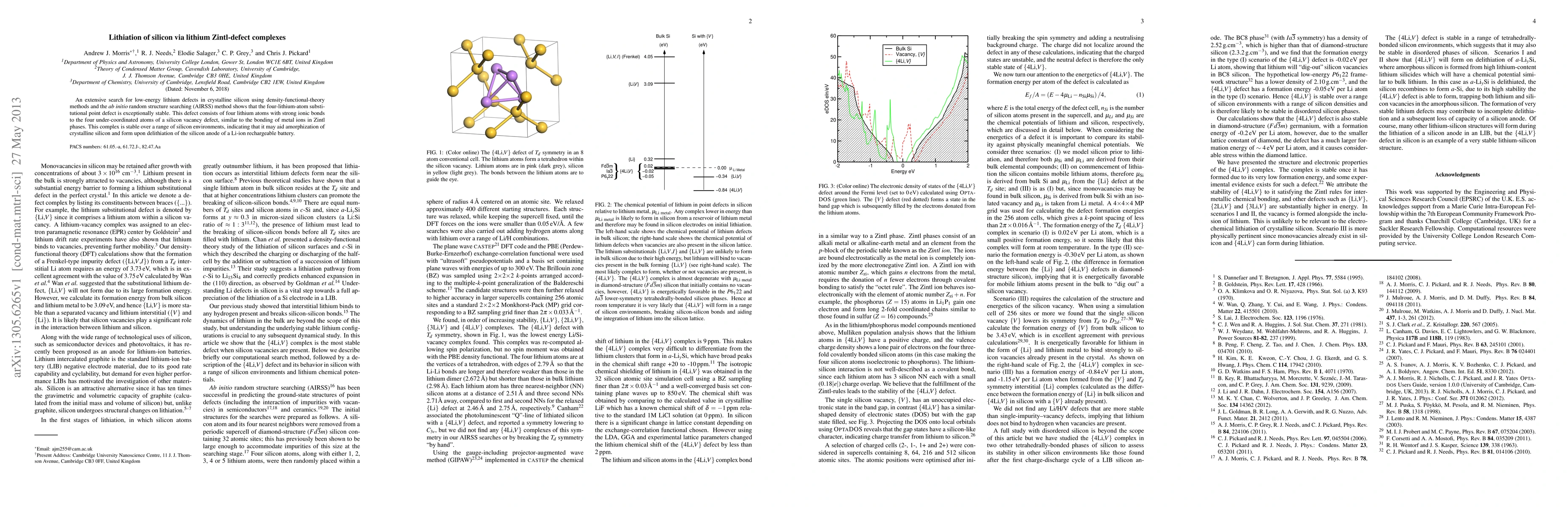 This study identifies a four-lithium-atom substitutional defect in crystalline silicon as exceptionally stable, akin to Zintl phases, which could facilitate silicon amorphization and form during delithiation of lithium-ion battery anodes. The stability of this defect is confirmed through density-functional-theory and ab initio random structure searching methods.