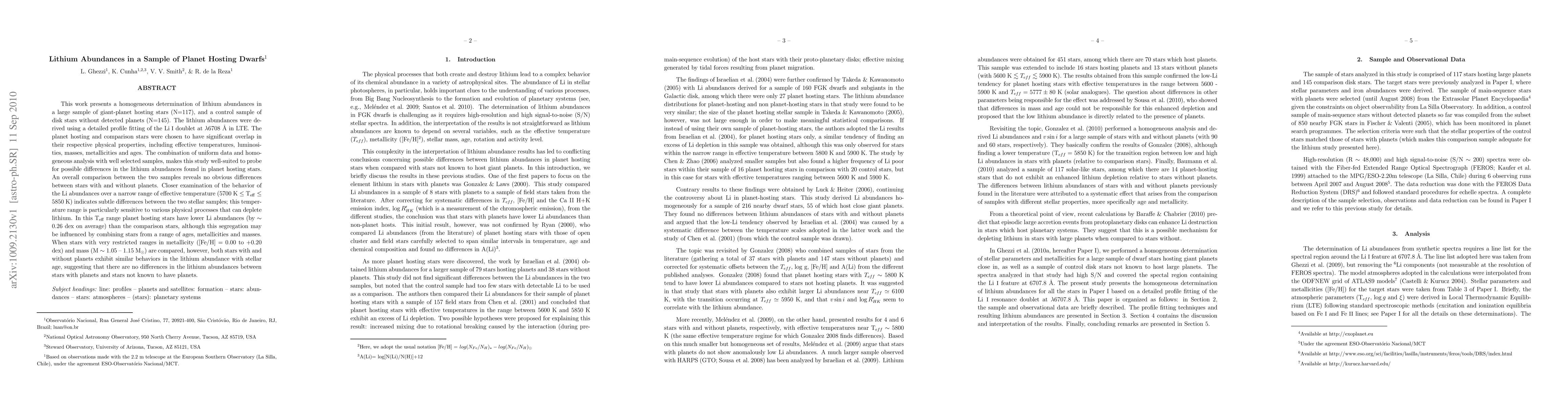This study investigates lithium abundances in planet-hosting dwarf stars and a control sample of non-planet-hosting stars, finding no overall differences. However, within a specific temperature range, planet-hosting stars show lower lithium abundances, though this trend may be influenced by varying stellar properties. When comparing stars with similar metallicities and masses, no differences in lithium abundances are observed between planet-hosting and non-hosting stars.