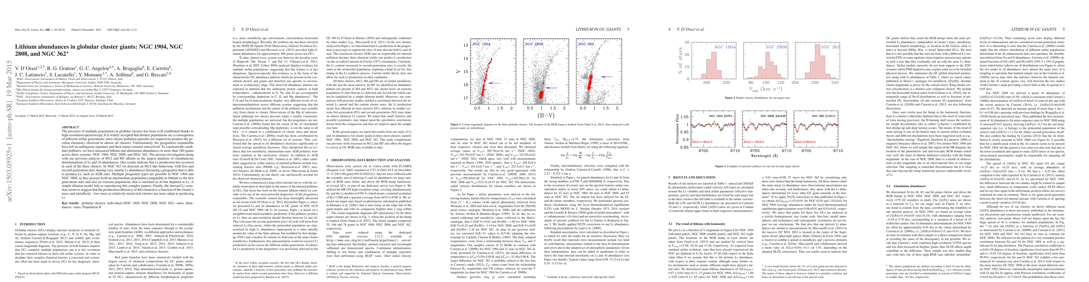 This study measures lithium and aluminum abundances in giants from three globular clusters to identify multiple stellar populations and their progenitors. Results show Li production in each cluster, suggesting different progenitor types, with NGC 362 resembling M12, while NGC 1904 and NGC 2808 exhibit complex patterns not easily explained by a simple dilution model.