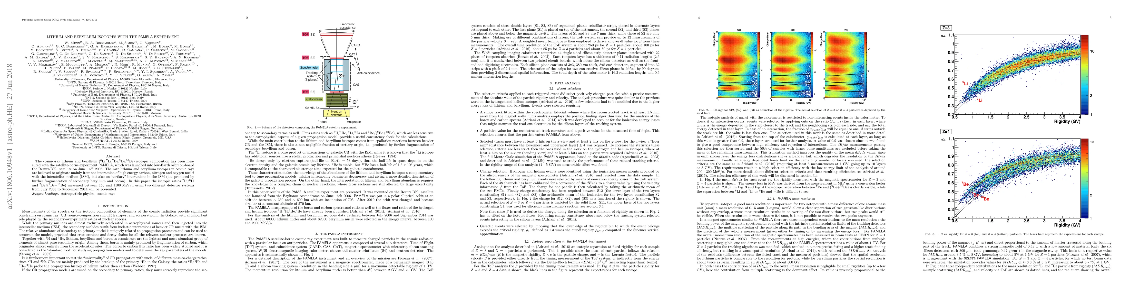 The PAMELA experiment measured the isotopic composition of cosmic-ray lithium and beryllium, revealing isotopic ratios $^{7}$Li/$^{6}$Li and $^{7}$Be/($^{9}$Be + $^{10}$Be) between 150 and 1100 MeV/n, providing insights into their origins from high-energy interactions in the interstellar medium.