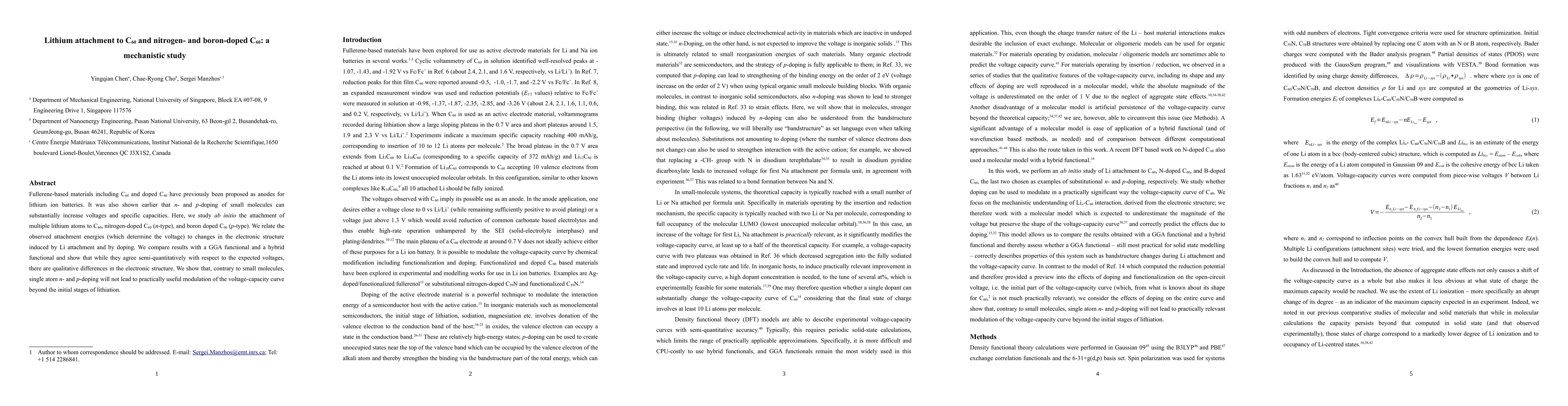 Researchers studied how lithium attaches to C60 and doped C60 using ab initio methods, finding that single atom doping doesn't significantly improve voltage-capacity curves beyond initial stages of lithiation.