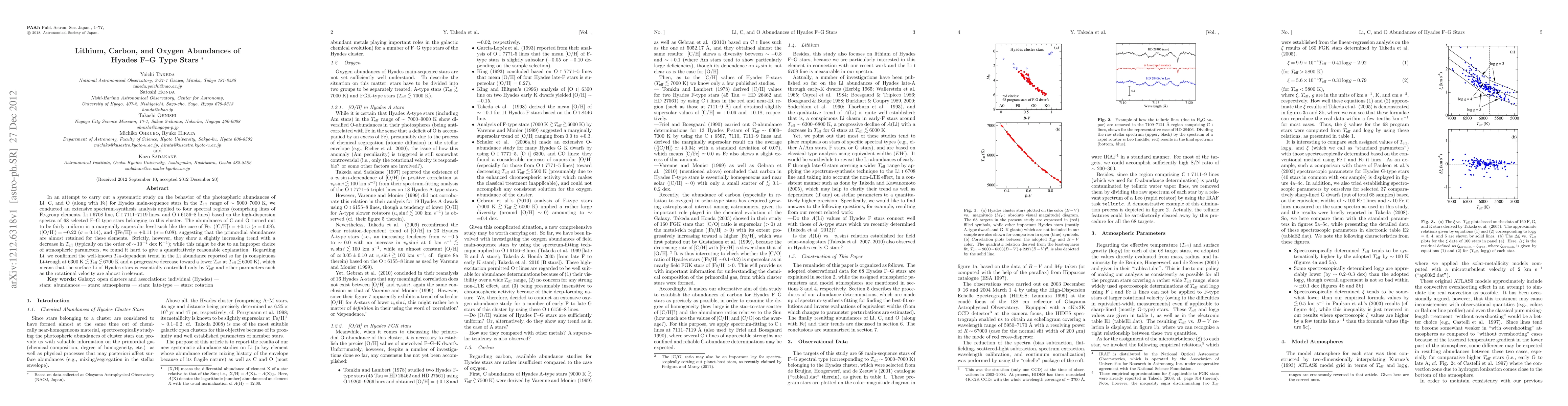 photospheric abundances of Li, C, and O (along with Fe) for Hyades