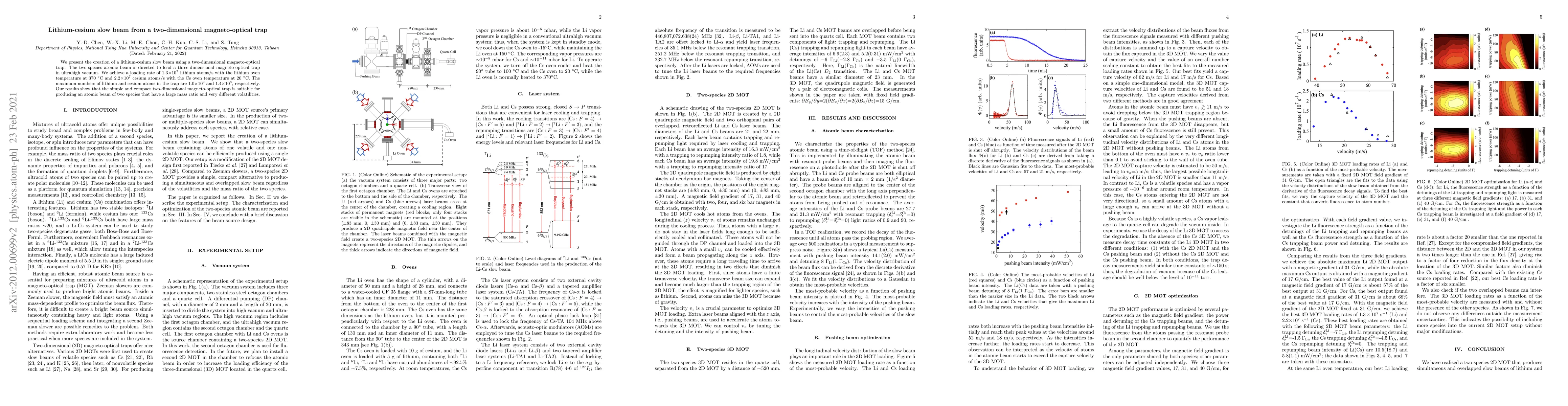 This paper describes the production of a lithium-cesium slow atomic beam using a two-dimensional magneto-optical trap, achieving high loading rates of 1.3$\times$10$^{7}$ lithium atoms/s and 2.2$\times$10$^{7}$ cesium atoms/s, suitable for further use in ultrahigh vacuum experiments.