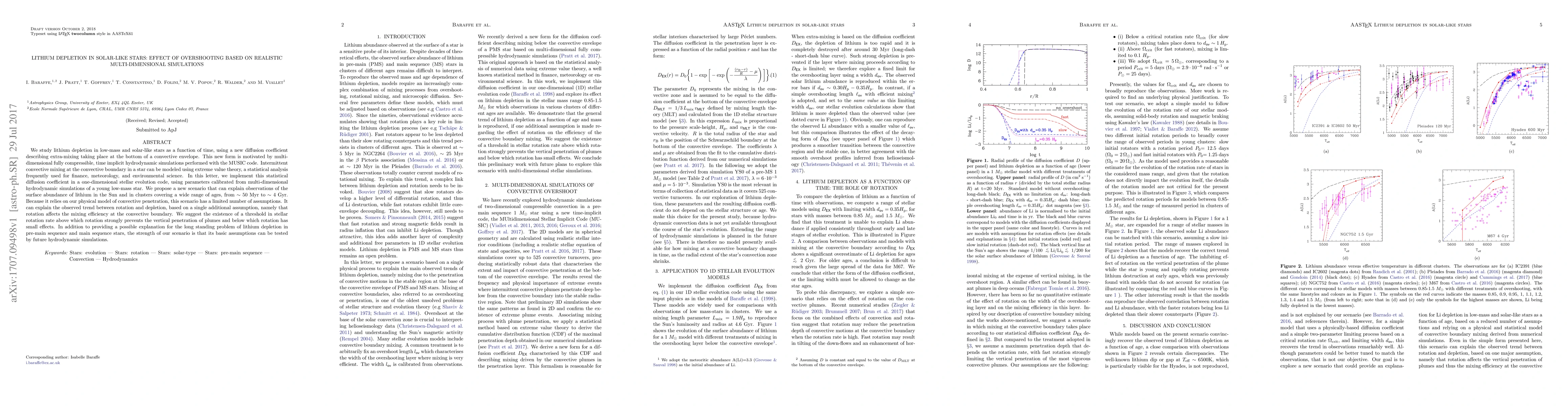 This paper investigates lithium depletion in solar-like stars using a new diffusion coefficient for extra-mixing at the convective envelope's base, calibrated from multi-dimensional hydrodynamic simulations. It proposes a scenario explaining observed lithium abundances, suggesting a threshold in stellar rotation affecting mixing efficiency.