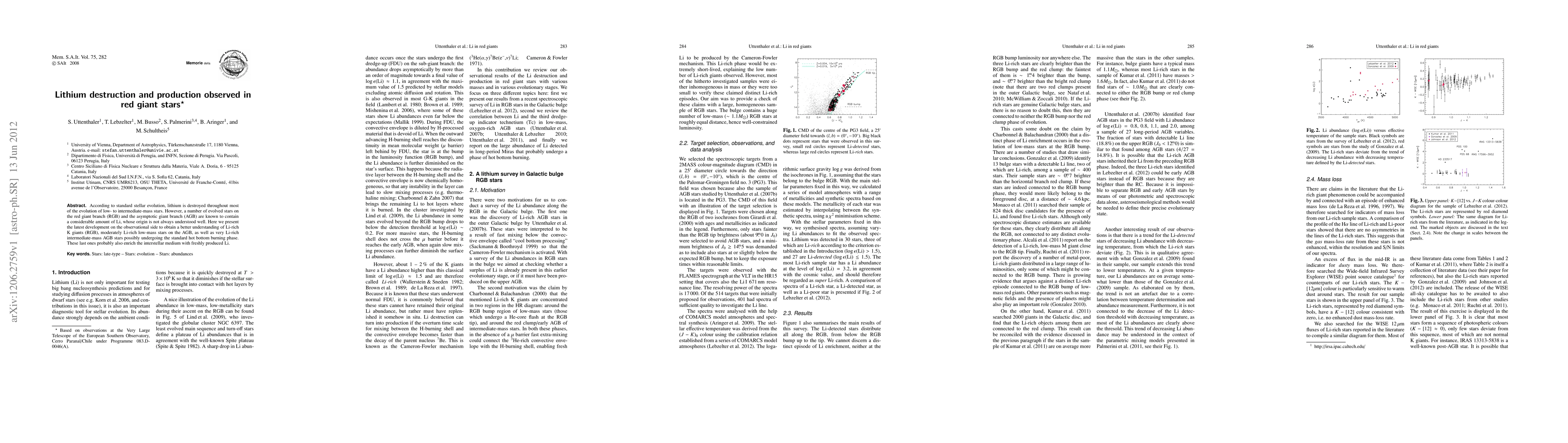 This paper investigates the unexpected presence of lithium in red giant stars, exploring the mechanisms behind lithium enrichment in Li-rich K giants on the red giant branch and Li-rich stars on the asymptotic giant branch, including the possible role of hot bottom burning in producing and dispersing lithium.