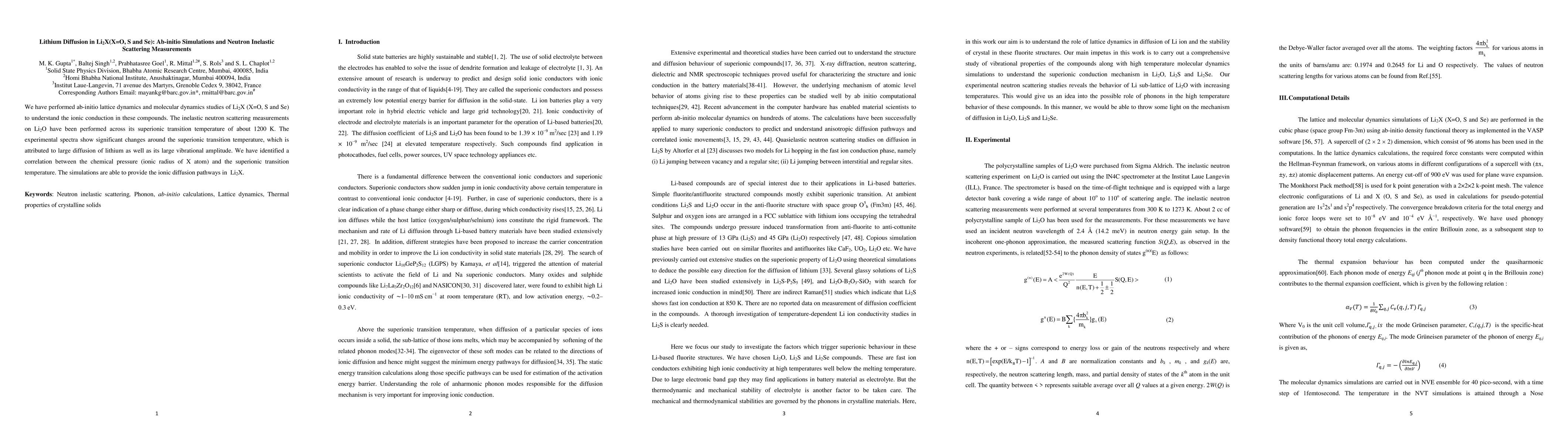This research combines ab-initio simulations and neutron scattering measurements to investigate ionic conduction in Li2X (X=O, S, Se). Experimental data from Li2O reveal substantial lithium diffusion and vibrational changes near the superionic transition, correlating with the ionic radius of X, while simulations uncover the diffusion pathways.