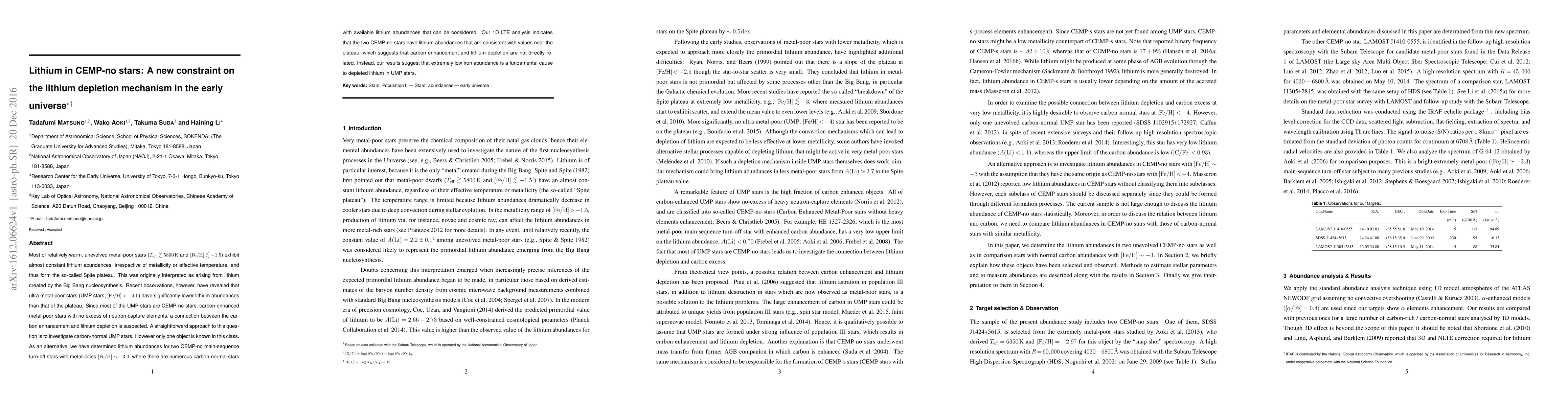 This paper investigates lithium abundances in CEMP-no stars to understand lithium depletion mechanisms in the early universe. The study finds that two CEMP-no main-sequence turn-off stars have lithium levels consistent with the Spite plateau, indicating that carbon enhancement does not directly cause lithium depletion, but rather extremely low iron abundance does.