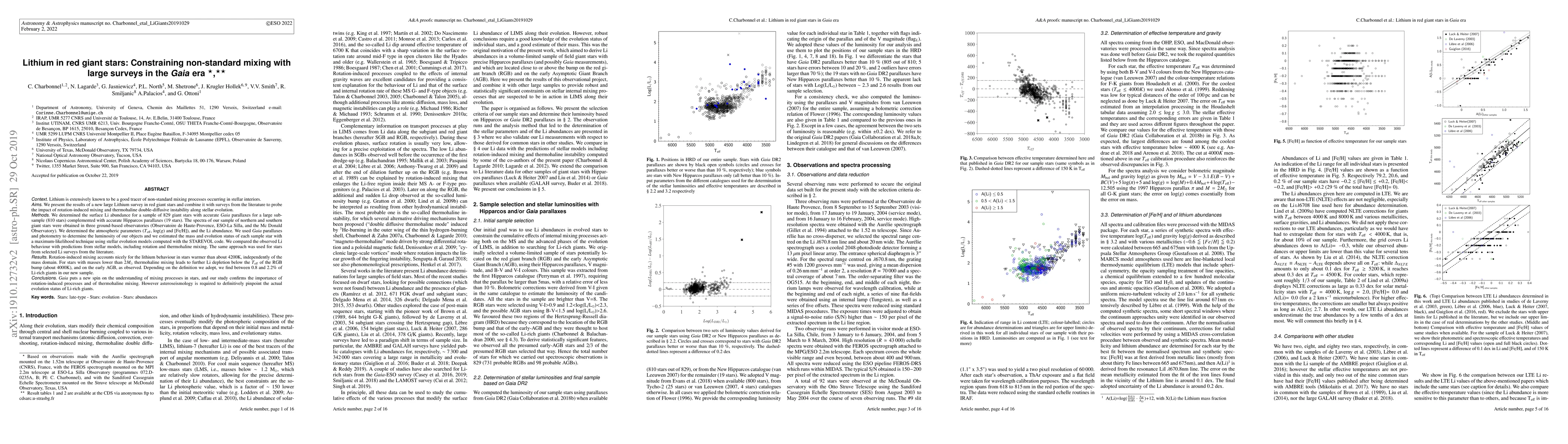 This paper presents a large Lithium survey of red giant stars, combining new data with literature surveys to investigate non-standard mixing processes. The study finds that rotation-induced mixing explains lithium behavior in warmer stars, while thermohaline mixing further depletes lithium in cooler stars. Gaia data enhances understanding of stellar evolution, but asteroseismology is needed to clarify the status of Li-rich giants.