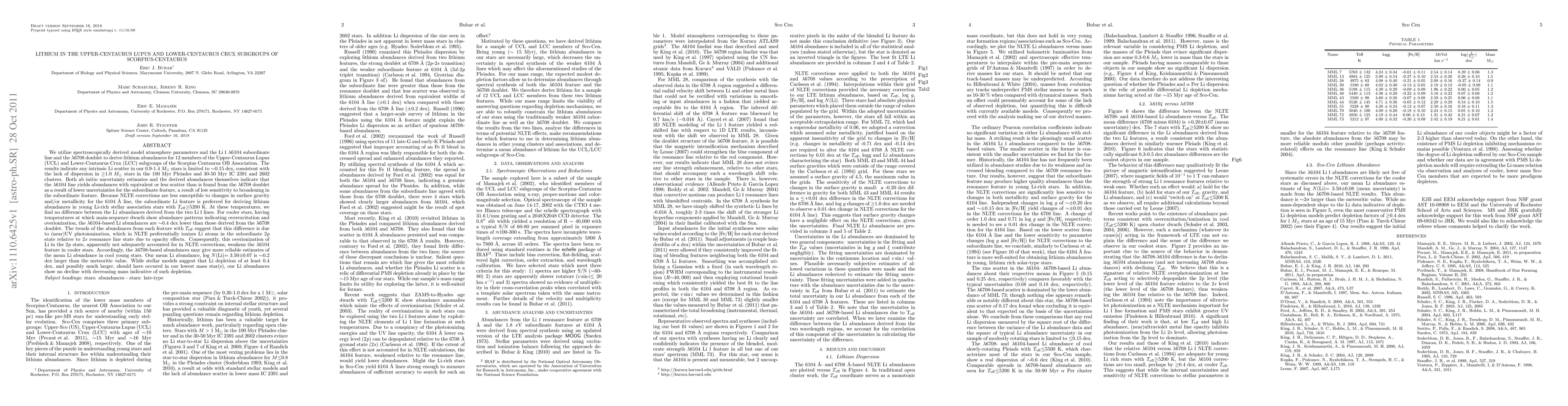 This paper measures lithium abundances in 12 stars from the Upper-Centaurus Lupus and Lower-Centaurus Crux subgroups using spectroscopic methods. The study finds minimal intrinsic lithium scatter in stars of 0.9-1.4 $M_{\odot}$, supporting the lack of dispersion in similar-mass stars in younger clusters. The $\lambda6104$ line is preferred for its lower uncertainties and reduced sensitivity to broadening, making it more reliable for determining lithium abundances in young, high-temperature stars.