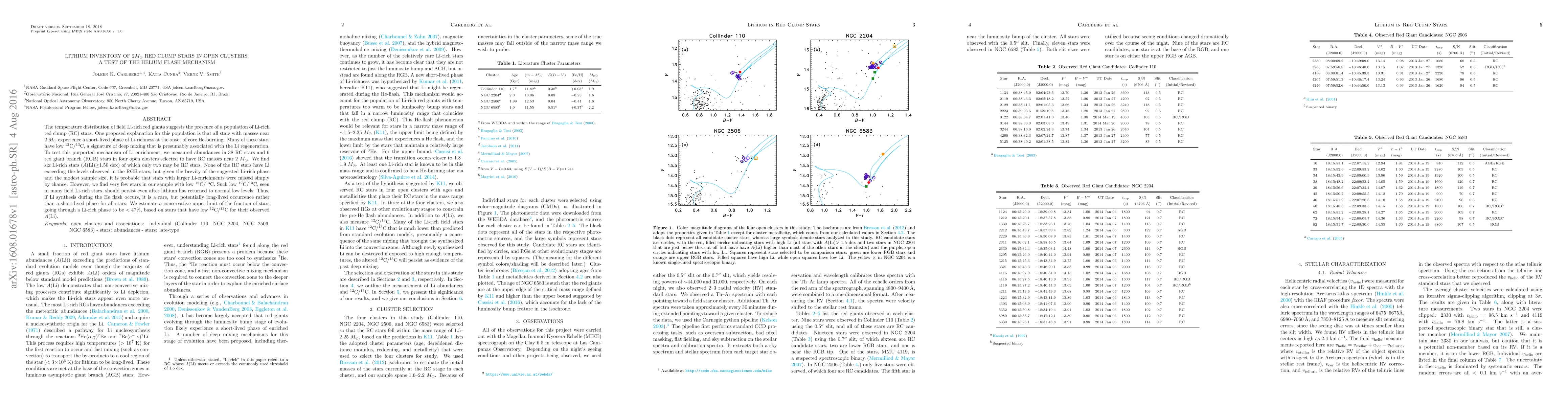 A study of 38 red clump stars in open clusters found that only a small fraction (<47%) experience a short-lived phase of lithium enrichment, suggesting that helium flash synthesis may be rare but potentially long-lived.