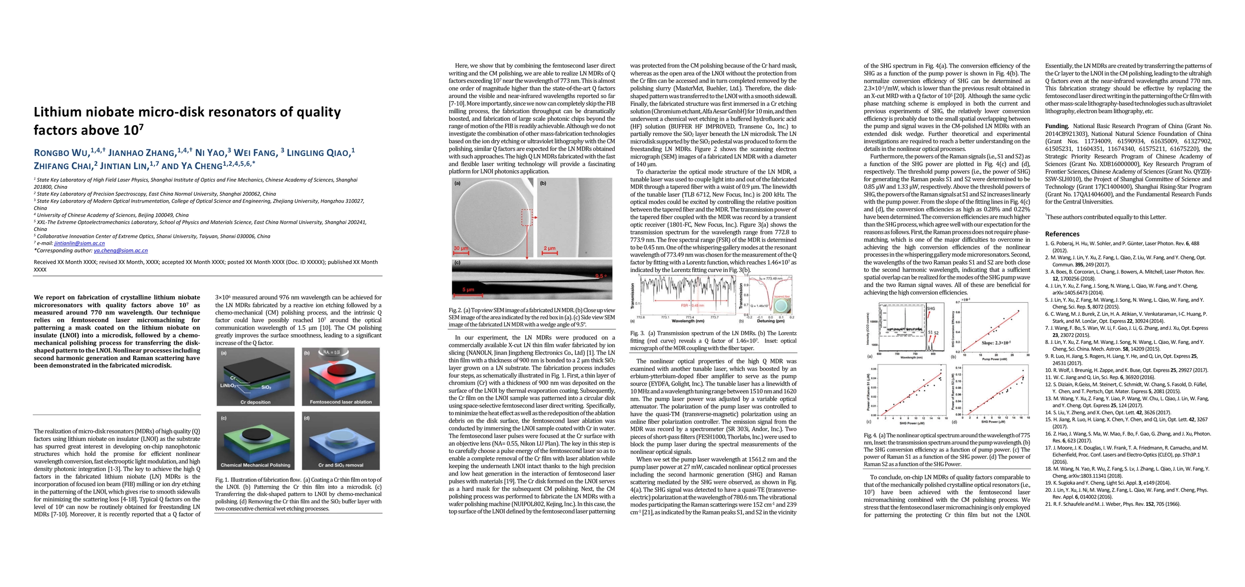 The study details the fabrication of high-quality lithium niobate micro-disk resonators using femtosecond laser micromachining and chemo-mechanical polishing, achieving quality factors exceeding 10^7. Nonlinear optical processes, such as second harmonic generation and Raman scattering, have been successfully demonstrated in these microresonators.
