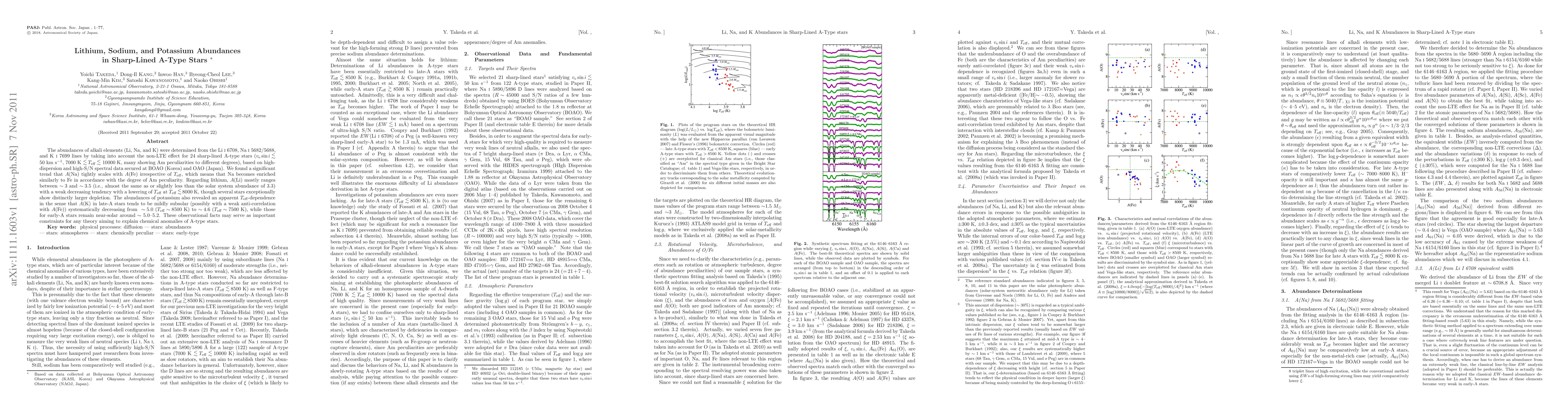 The abundances of alkali elements (Li, Na, and K) were determined from the Li I 6708, Na I 5682/5688, and K I 7699 lines by taking into account the non-LTE effect for 24 sharp-lined A-type stars v sin i < 50 km/s, 7000 K < Teff <10000 K, many showing Am peculiarities to different degrees), based on high-dispersion and high-S/N spectral data secured at BOAO (Korea) and OAO (Japan). We found a significant trend that A(Na) tightly scales with A(Fe) irrespective of Teff, which means that Na becomes enriched similarly to Fe in accordance with the degree of Am peculiarity. Regarding lithium, A(Li) mostly ranges between ~3 and ~3.5 (i.e., almost the same as or slightly less than the solar system abundance of 3.3) with a weak decreasing tendency with a lowering of Teff at Teff < 8000 K, though several stars exceptionally show distinctly larger depletion. The abundances of potassium also revealed an apparent Teff-dependence in the sense that A(K) in late-A stars tends to be mildly subsolar (possibly with a weak anti-correlation with A(Fe)) systematically decreasing from ~5.0 (Teff ~ 8500 K) to ~4.6 (Teff ~ 7500 K), while those for early-A stars remain near-solar around ~5.0-5.2. These observational facts may serve as important constraints for any theory aiming to explain chemical anomalies of A-type stars.