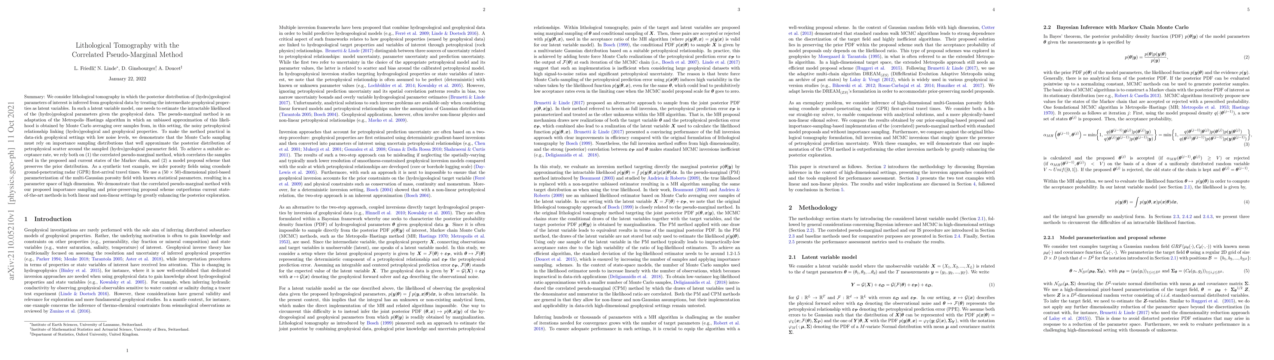 The paper presents an adaptive prior-preserving proposal scheme, enhancing the exploration of the posterior PDF in high-dimensional problems, and demonstrates the effectiveness of the correlated pseudo-marginal (CPM) method in lithological tomography.