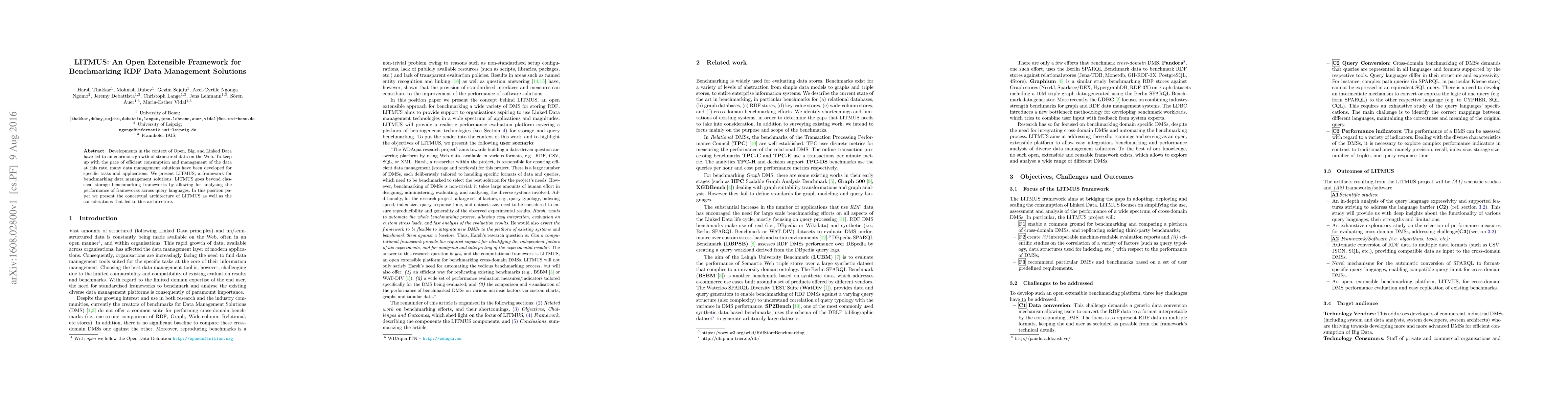 Developments in the context of Open, Big, and Linked Data have led to an enormous growth of structured data on the Web. To keep up with the pace of efficient consumption and management of the data at this rate, many data Management solutions have been developed for specific tasks and applications. We present LITMUS, a framework for benchmarking data management solutions. LITMUS goes beyond classical storage benchmarking frameworks by allowing for analysing the performance of frameworks across query languages. In this position paper we present the conceptual architecture of LITMUS as well as the considerations that led to this architecture.