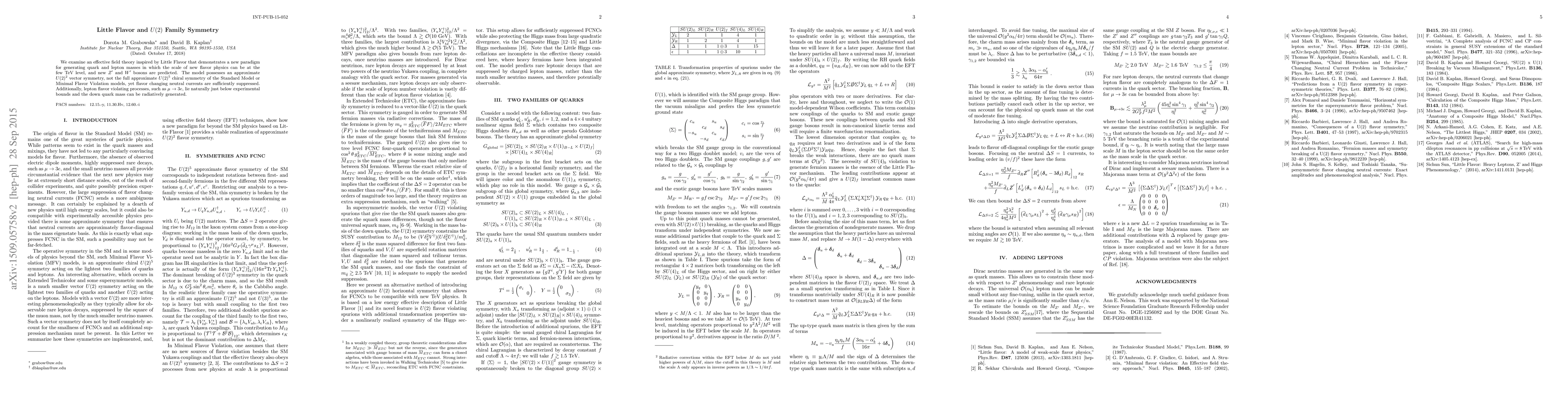 This paper explores a novel effective field theory based on Little Flavor, proposing a new framework for generating quark and lepton masses with a few TeV scale for new flavor physics. It predicts new $Z'$ and $W'$ bosons, maintains an approximate $U(2)^2$ symmetry, and suppresses flavor changing neutral currents while allowing for lepton flavor violation just below experimental limits.