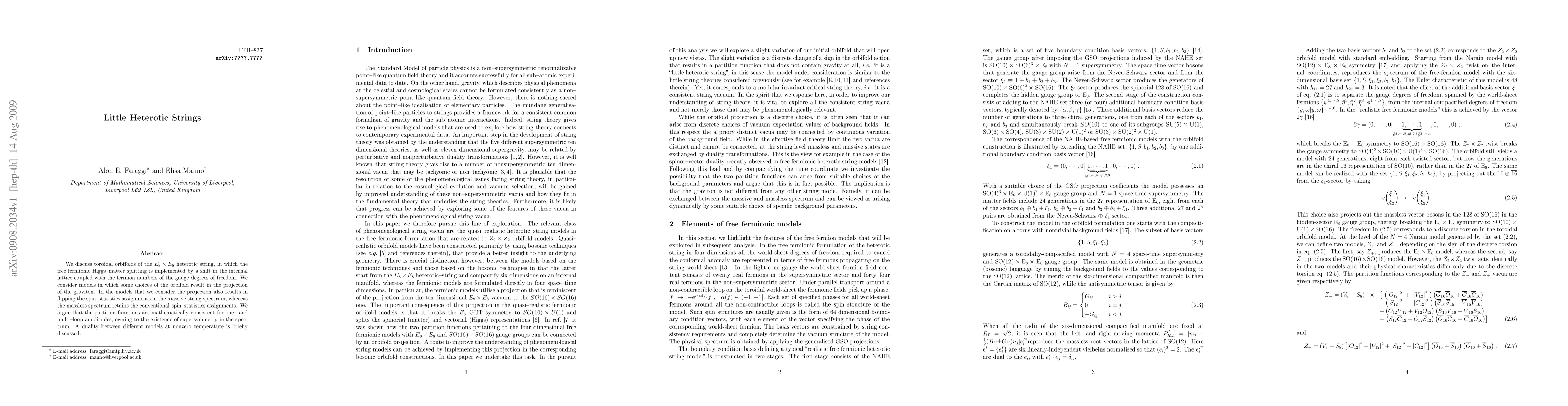 We discuss toroidal orbifolds of the E8XE8 heterotic string, in which the free fermionic Higgs-matter splitting is implemented by a shift in the internal lattice coupled with the fermion numbers of the gauge degrees of freedom. We consider models in which some choices of the orbifold result in the projection of the graviton. In the models that we consider the projection also results in flipping the spin-statistics assignments in the massive string spectrum, whereas the massless spectrum retains the conventional spin-statistics assignments. We argue that the partition functions are mathematically consistent for one- and multi-loop amplitudes, owning to the existence of supersymmetry in the spectrum. A duality between different models at nonzero temperature is briefly discussed.